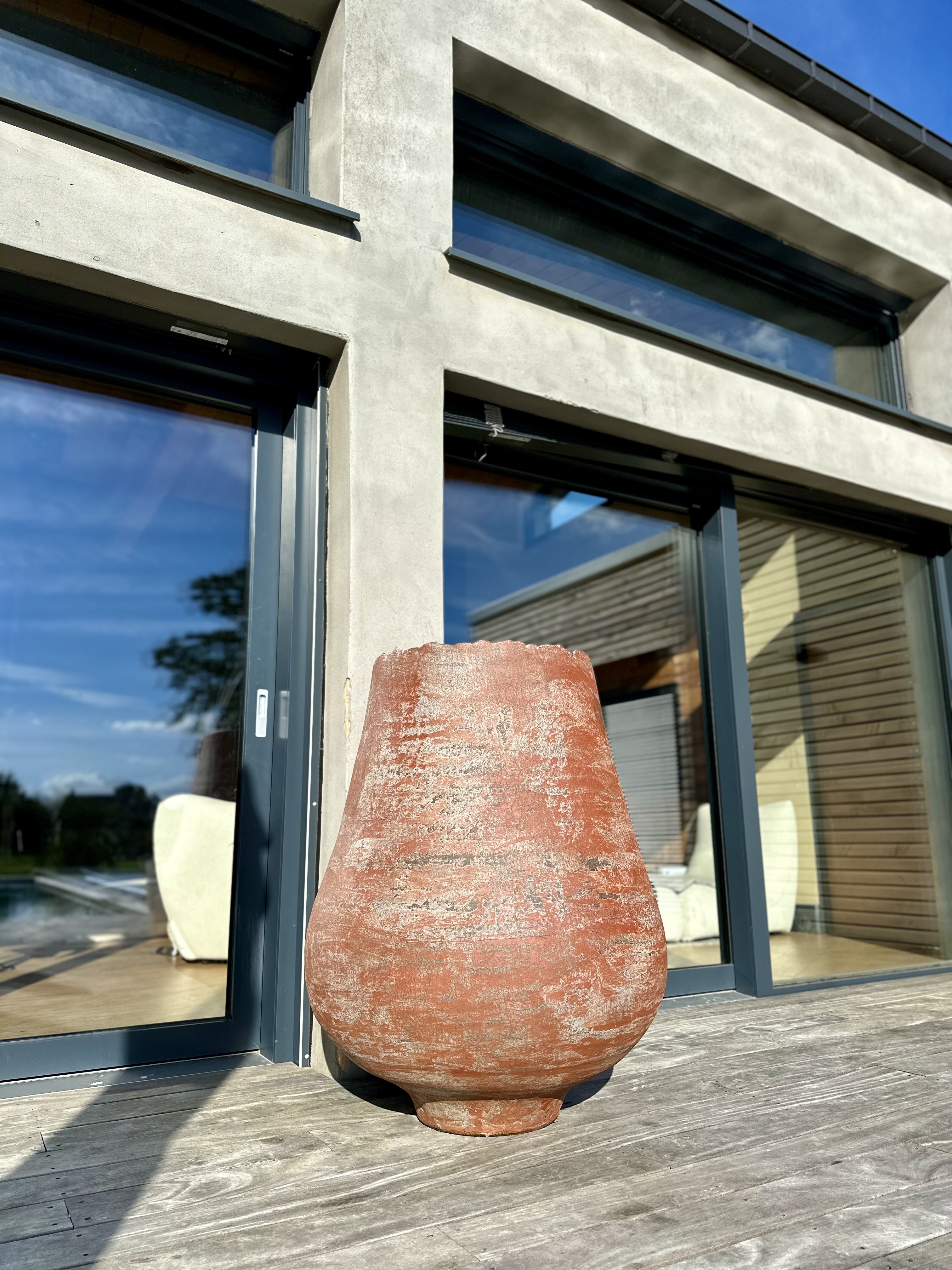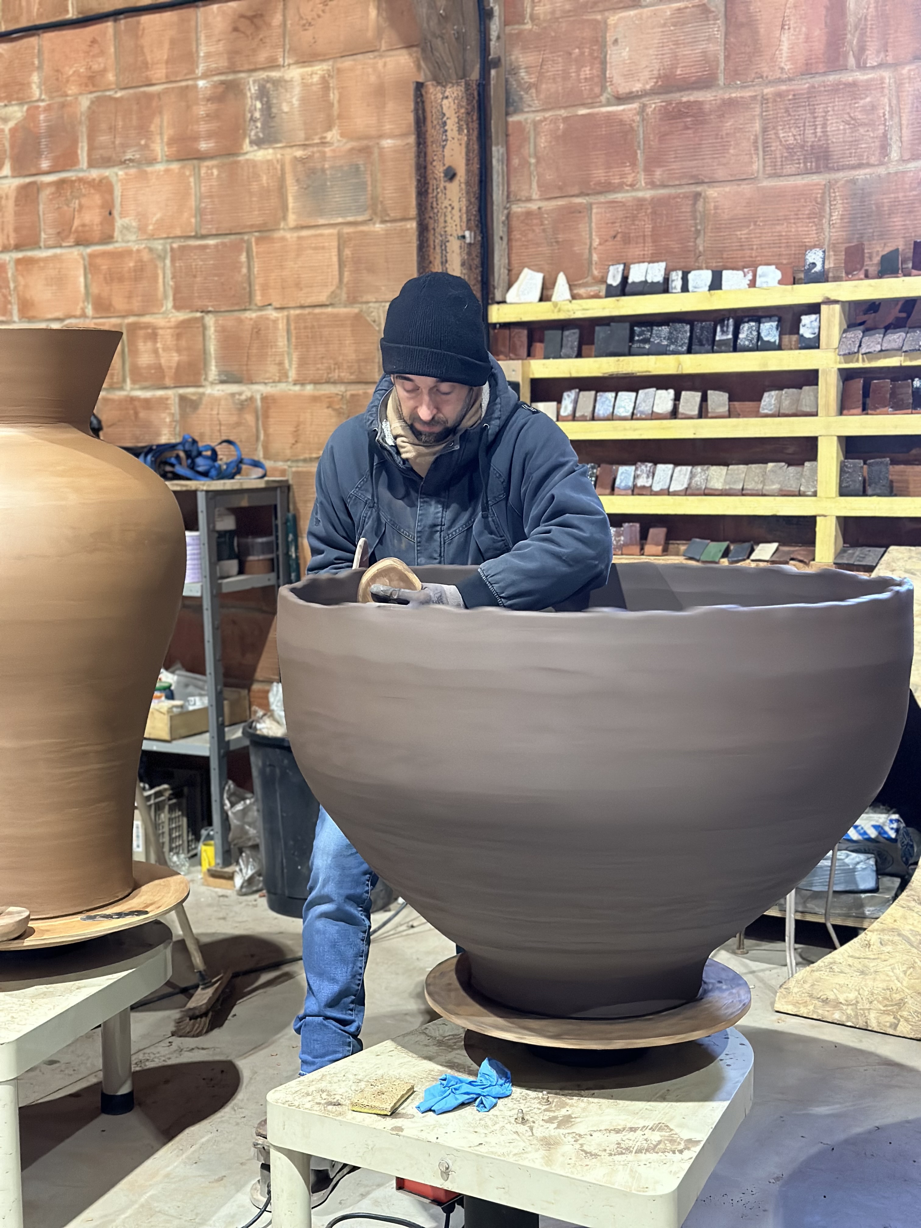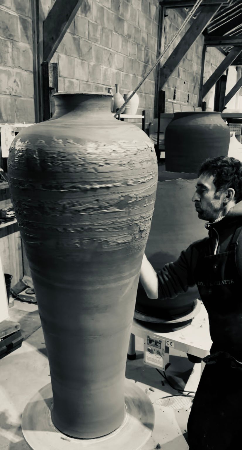 Chaque pièce est modelée à la main, cuite à haute température, puis pensée pour dialoguer avec : l’architecture contemporaine, les jardins paysagers, les hôtels et résidences d’exception, les espaces publics