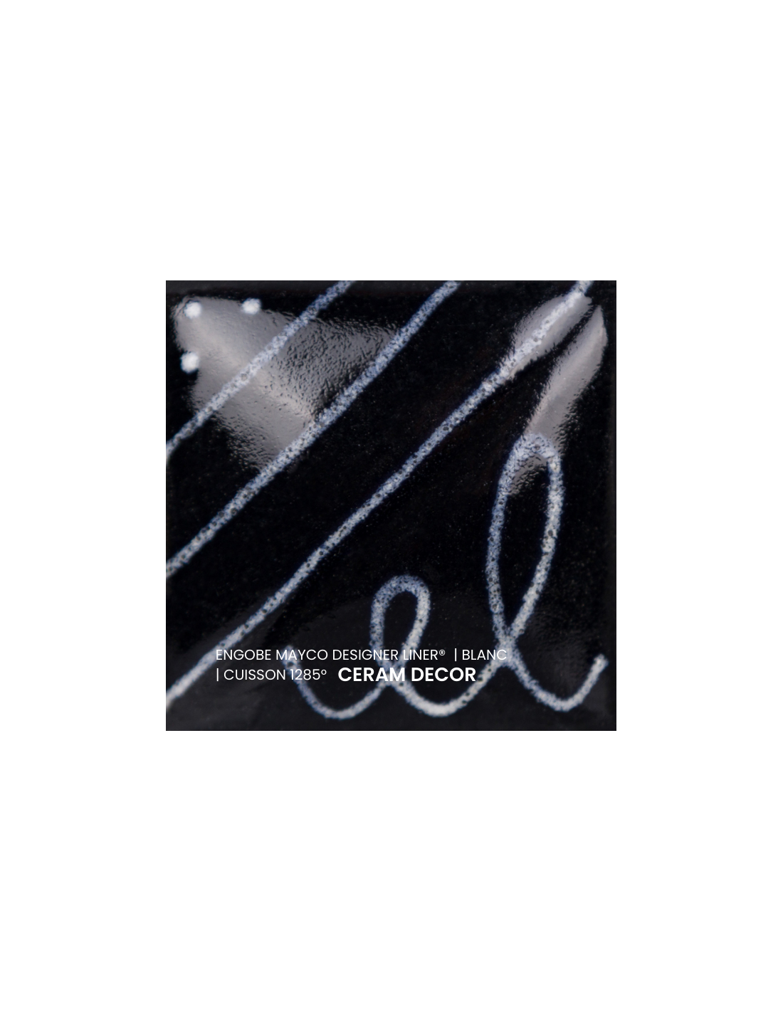 - Si vous rencontrez des problèmes de décollement de votre engobe une fois votre pièce cuite vous pouvez ajouter un fondant ( FDN-TB ) à votre Designer liner®! pour faciliter l'adhérence sur votre tesson.
