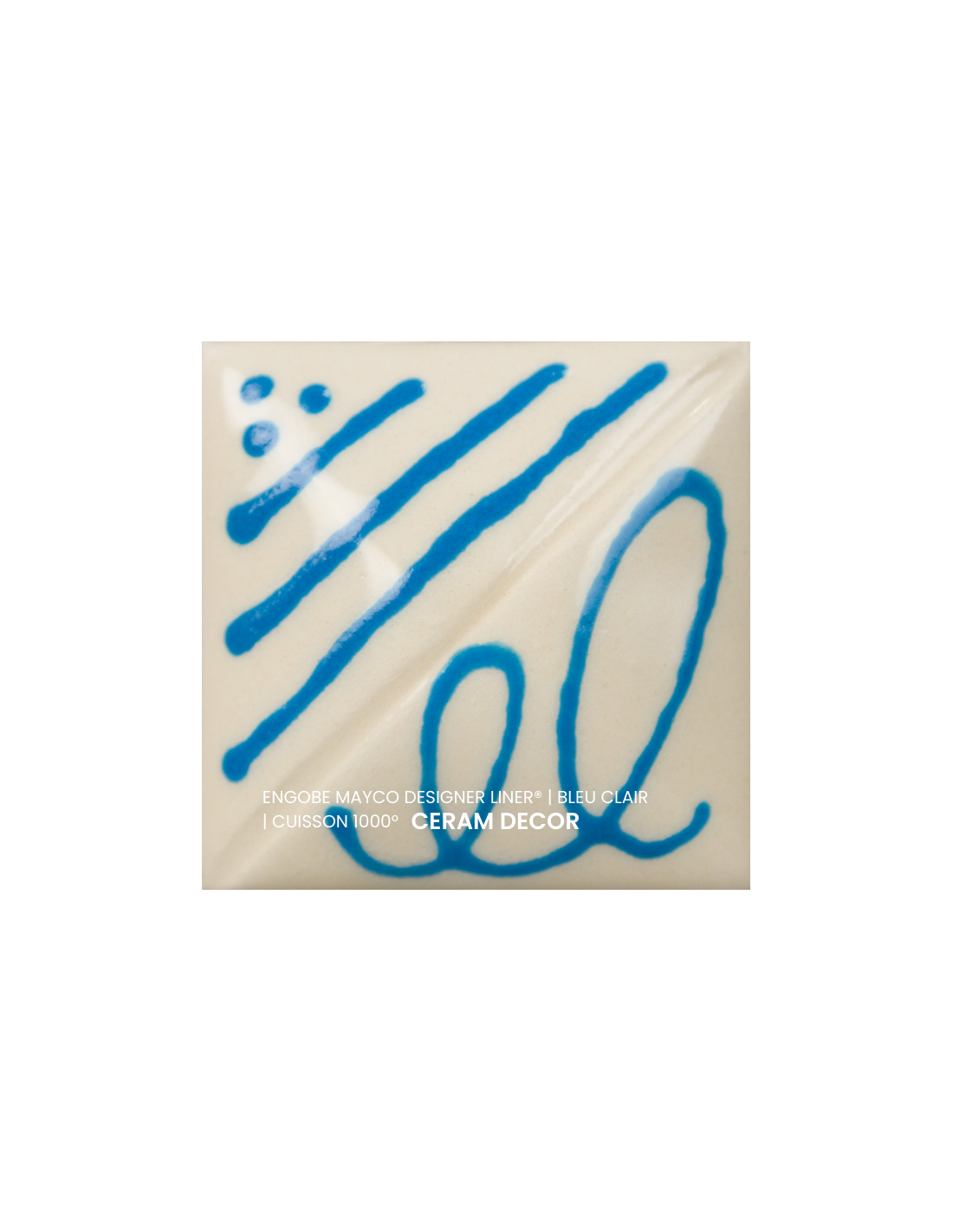 - Si vous rencontrez des problèmes de décollement de votre engobe une fois votre pièce cuite vous pouvez ajouter un fondant ( FDN-TB ) à votre Designer liner®! pour faciliter l'adhérence sur votre tesson.