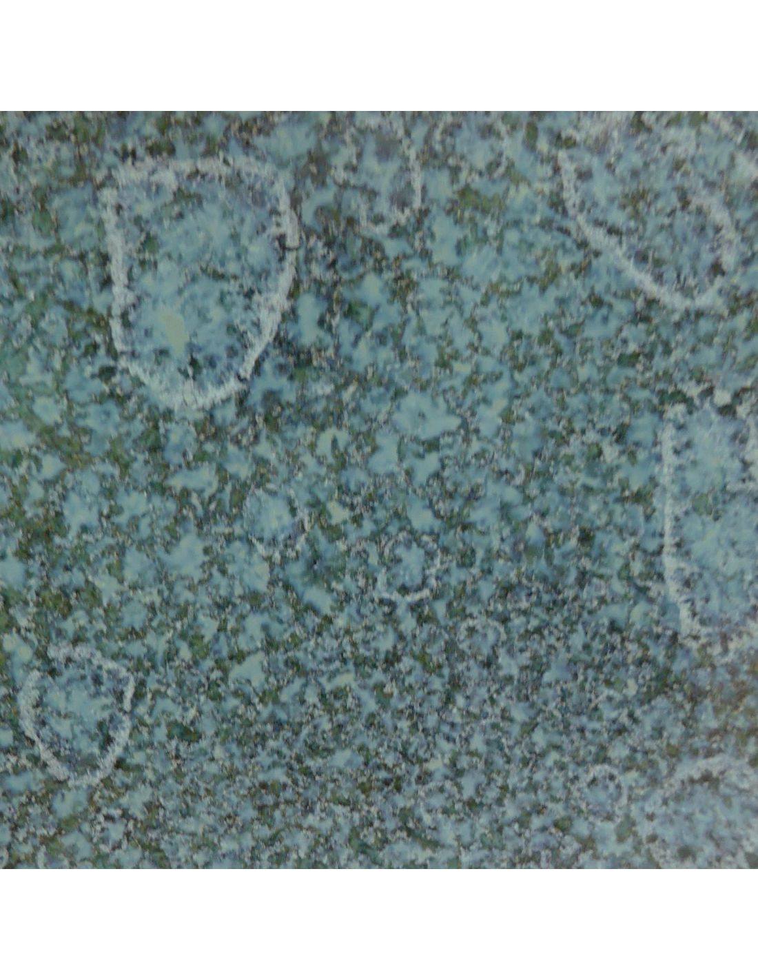 Émail en poudre pour faïence vert satiné avec des effets de petites nucléations feuilletées.