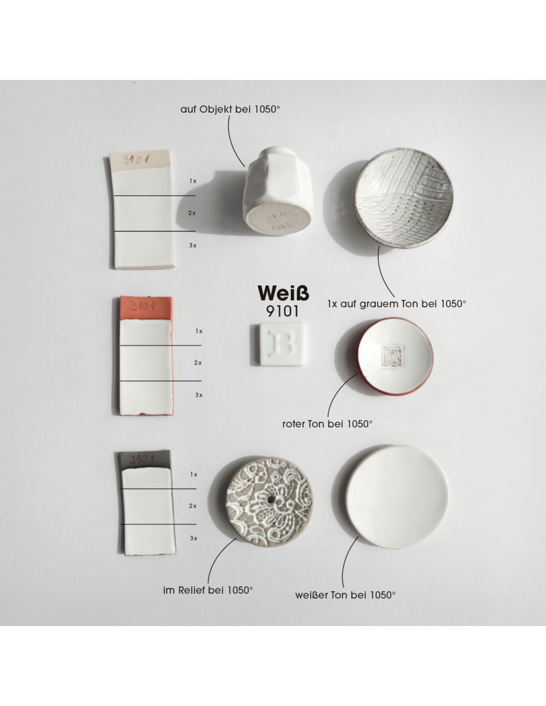 - Émail blanc brillant bien opaque, même sur argile noire