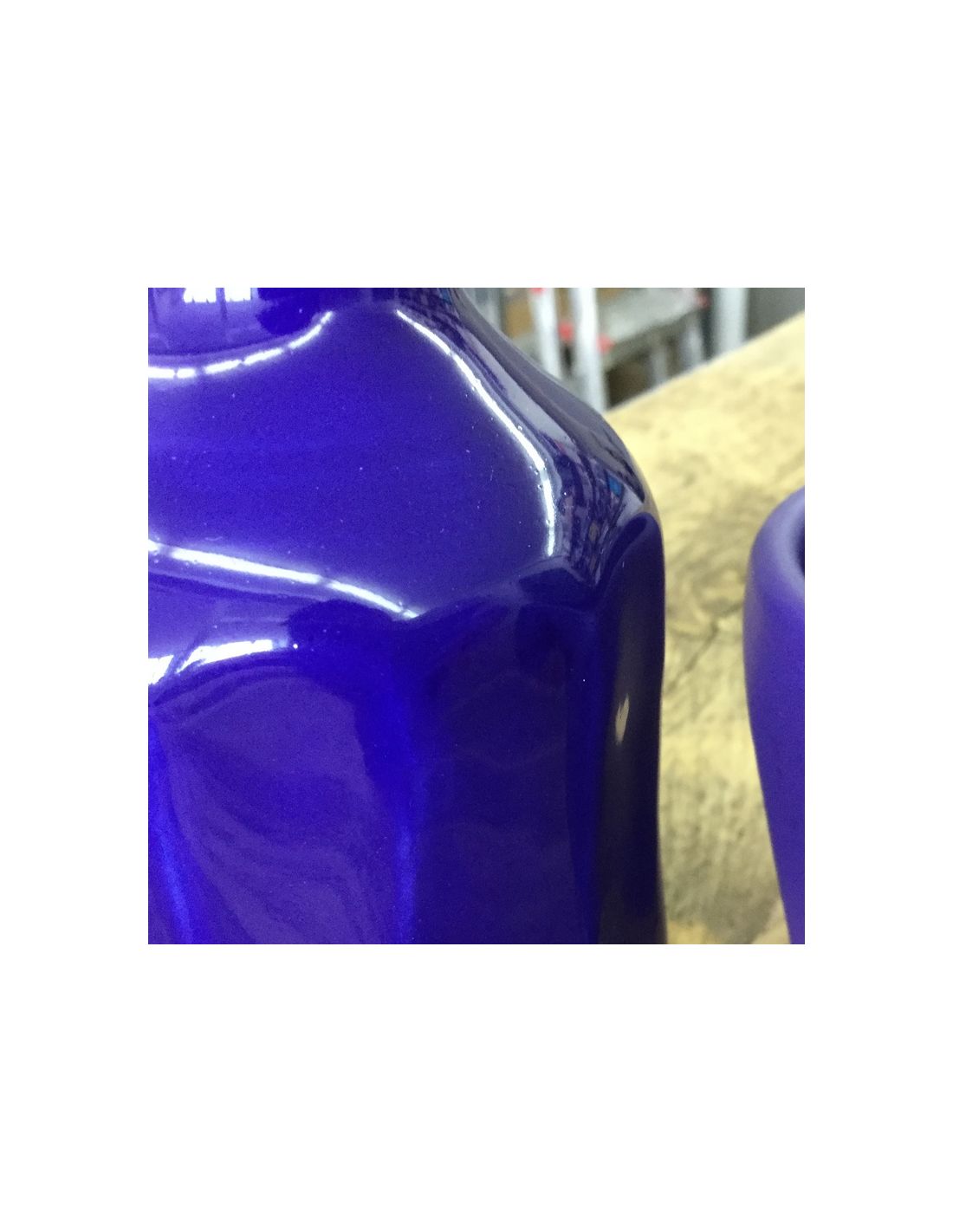 - Émail bleu vif brillant