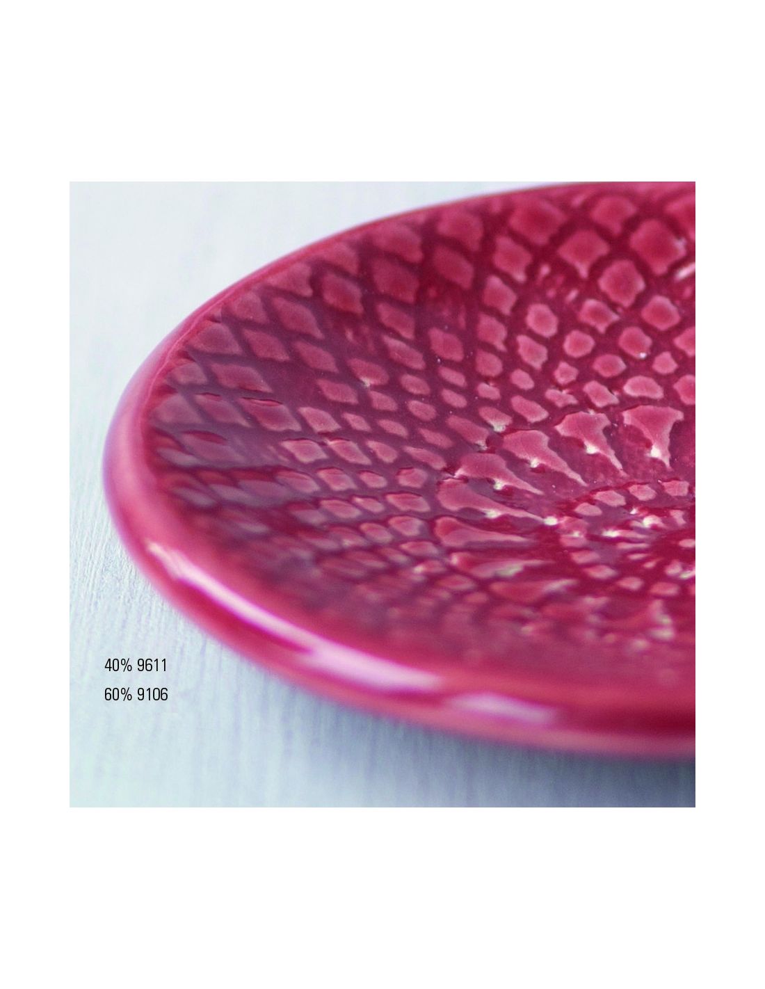 - Remuez le pot énergiquement avant de l'utiliser, appliquez ensuite votre émail au pinceau en deux couches fluides sur un biscuit de faïence. Laissez sécher entre les couches et complètement avant de faire cuire entre 1040°C et 1060°C. Plus la température sera élevée, meilleur sera le nappage et plus les contrastent apparaîtront sur les reliefs.