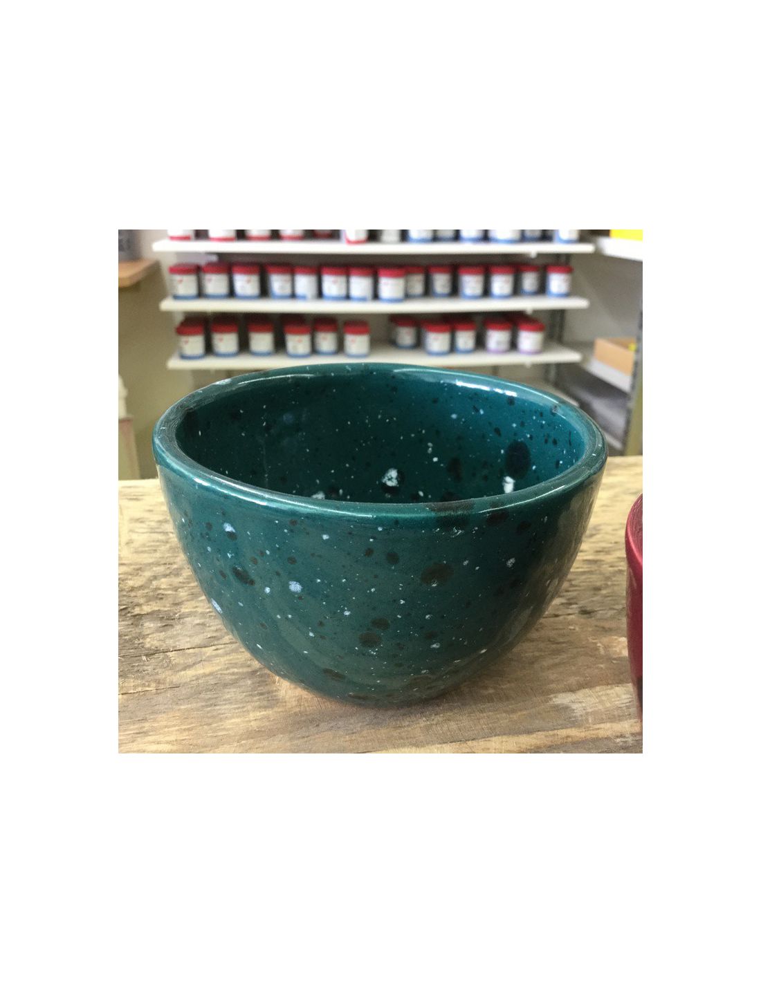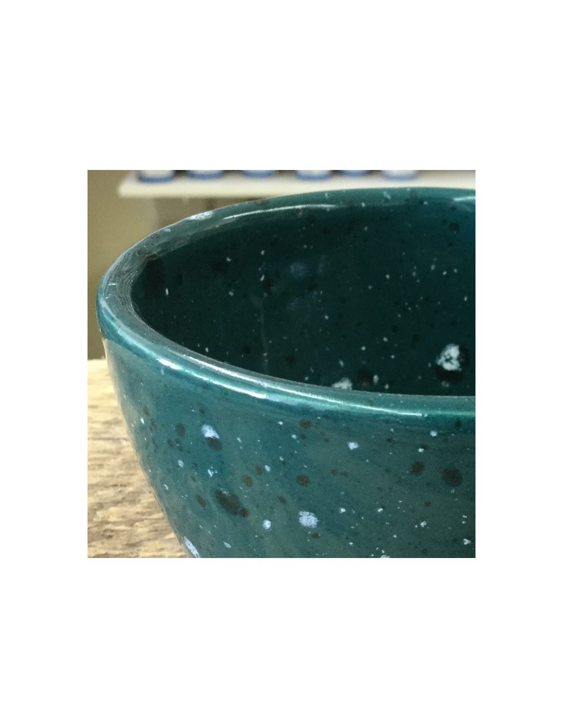 - Avec une application plus épaisse sur des surfaces horizontales comme l'intérieur des assiettes et des bols, un résultat craquelé turquoise foncé.