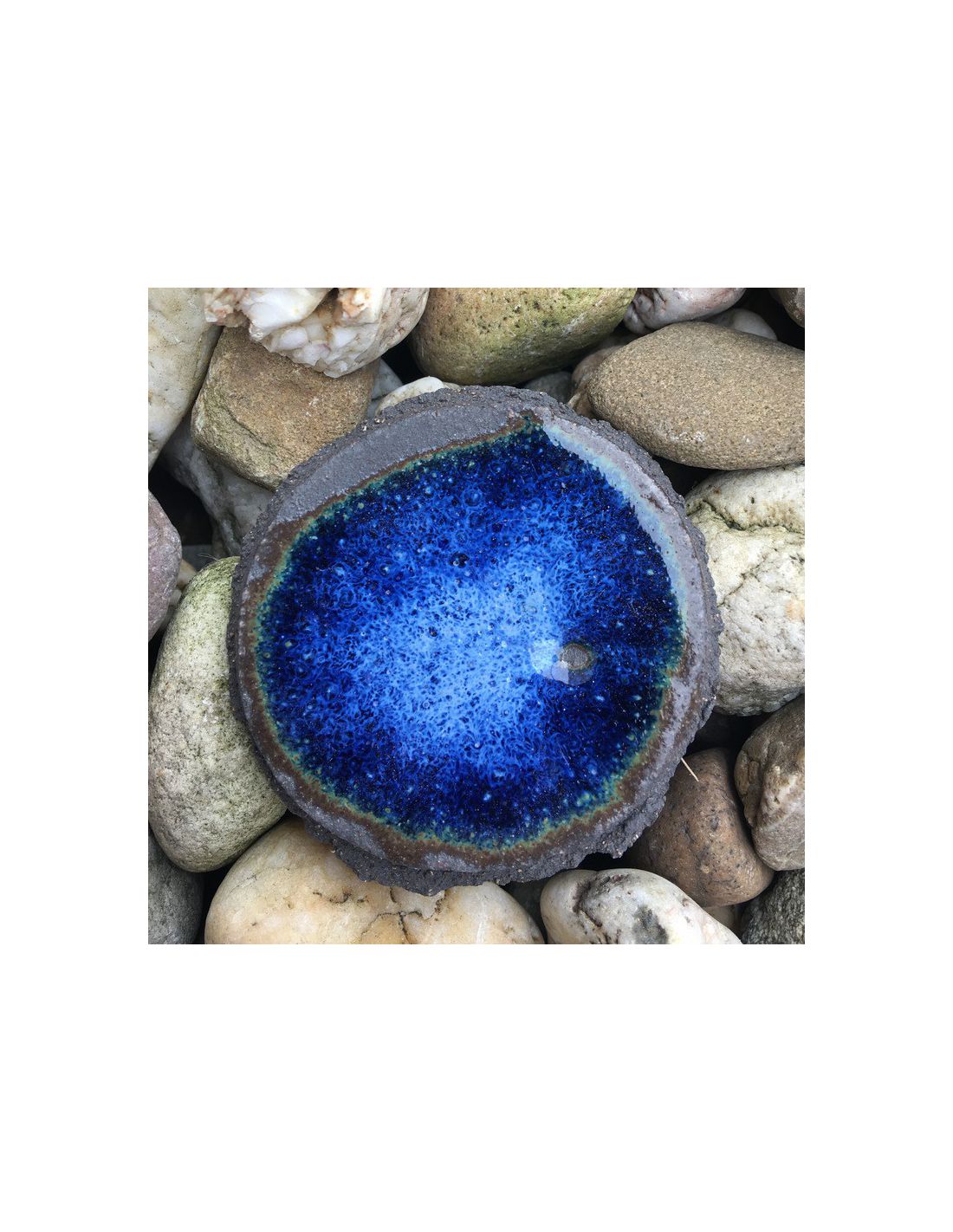 - 1250°C : bleu vif avec des effets lumineux et fond vert si appliqué en fine couche