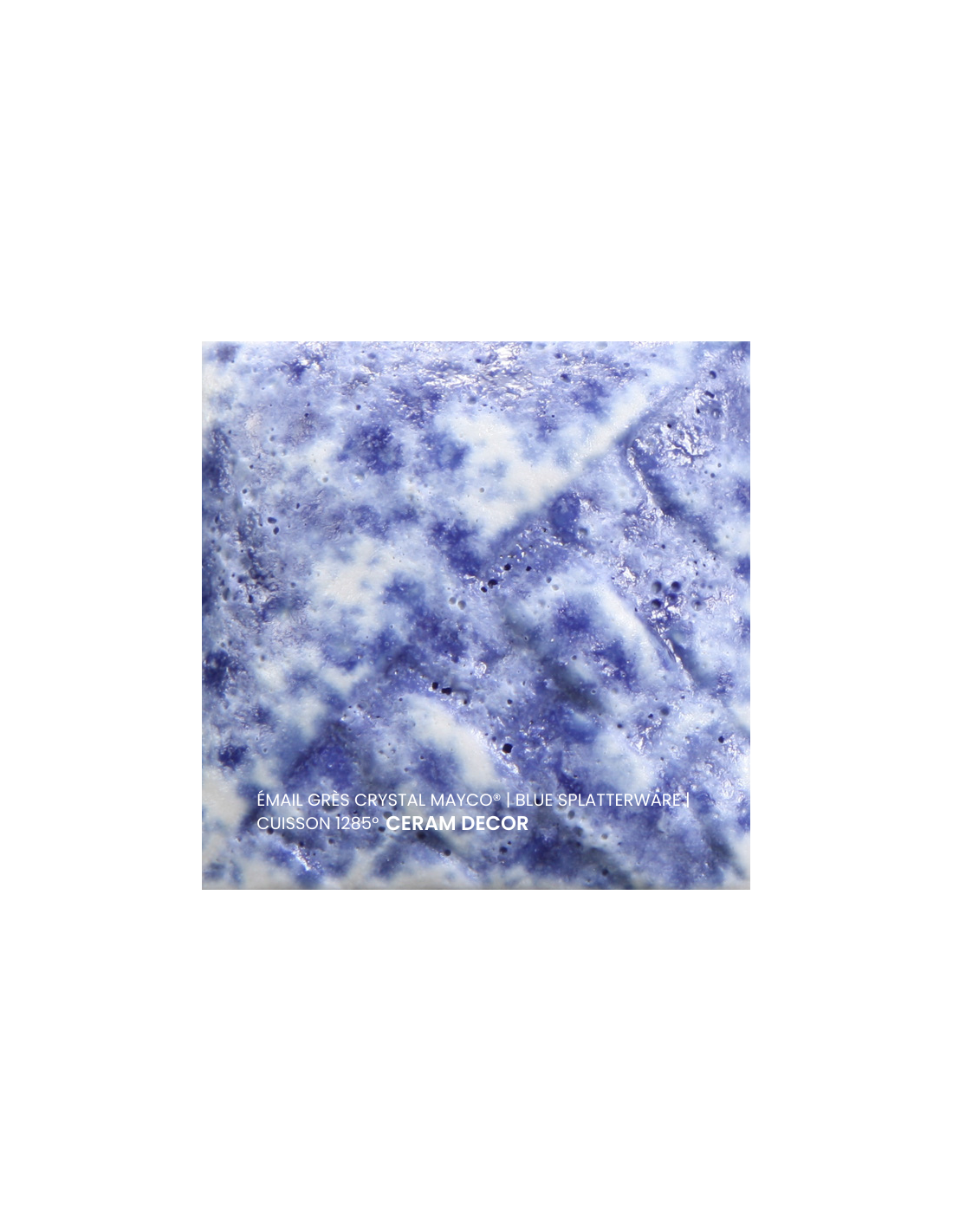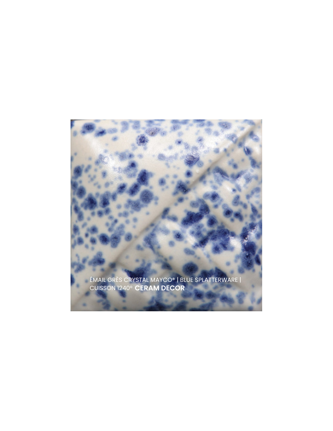L'émail grès blue splatterware de la série "Crystals" Mayco® se compose d'une couleur de fond et de cristaux brillants colorés, a un temps de séchage rapide et stable, tout en garantissant des couleurs intenses à votre pièce ! Chaque émaillage est différent, les cristaux s'étalent sur les pièces plates et coulent sur les pièces verticales. Ils peuvent être superposés ou mélangés pour donner des effets spéciaux. Sa composition et son mode de fabrication lui assure un excellent nappage lors de la cuisson qui corrige éventuellement les défauts d'application. Il est très flexible et simple d'emploi.