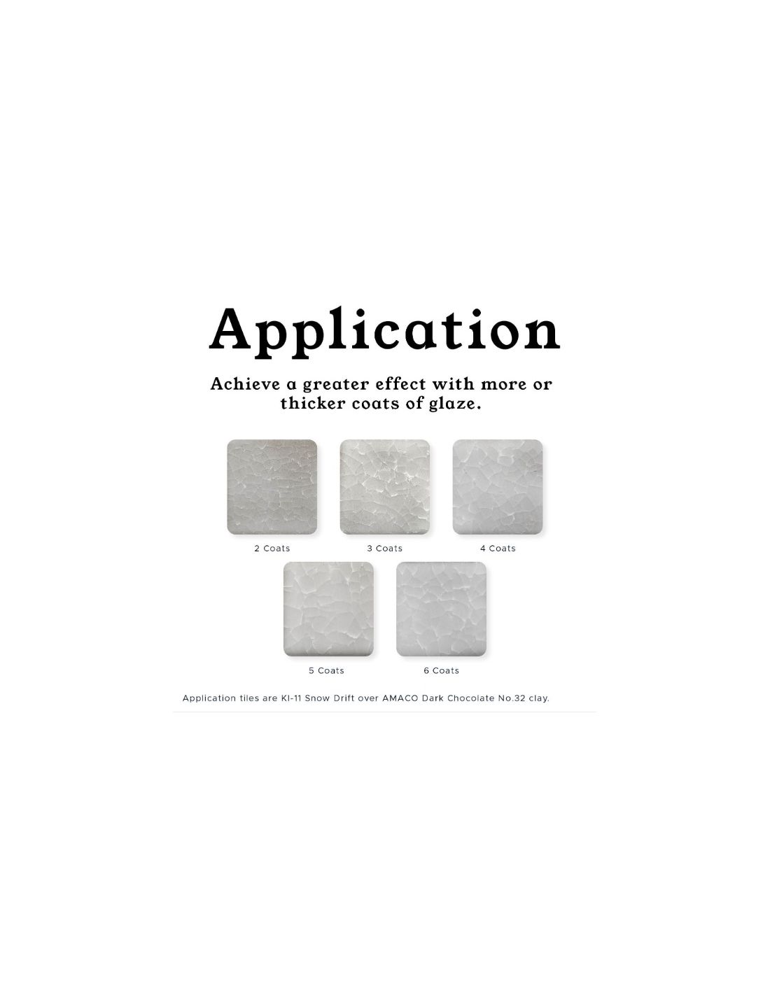 - Appliquer sur dégourdi (1ère cuisson de grès et porcelaine) au pinceau en 3 à 4 couches épaisses. Ils peuvent également être appliqués par trempage ou par pulvérisation.