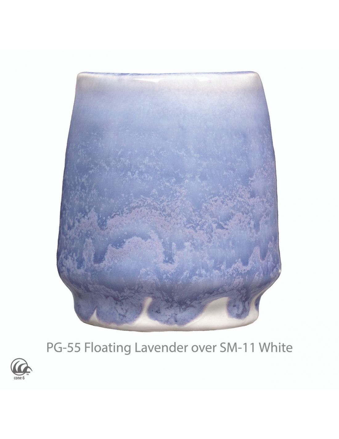 PG-55 Floating Lavender : Émail violet clair avec une texture plus claire là où il y a de l'épaisseur. Se superpose bien avec les séries Céladons et Potter's Choice. Si vous superposez, appliquez 2 couches sur 2 couches.