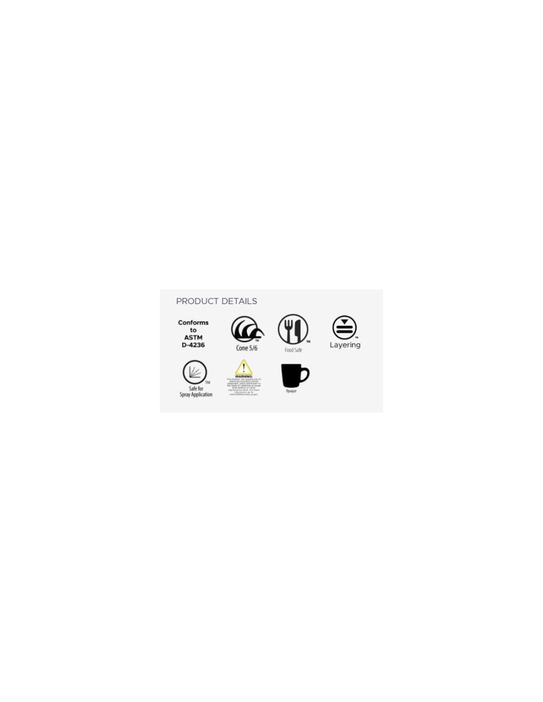 - Cuisson à haute température de 1180°C à 1250°C qui d'applique sur grès et porcelaine.