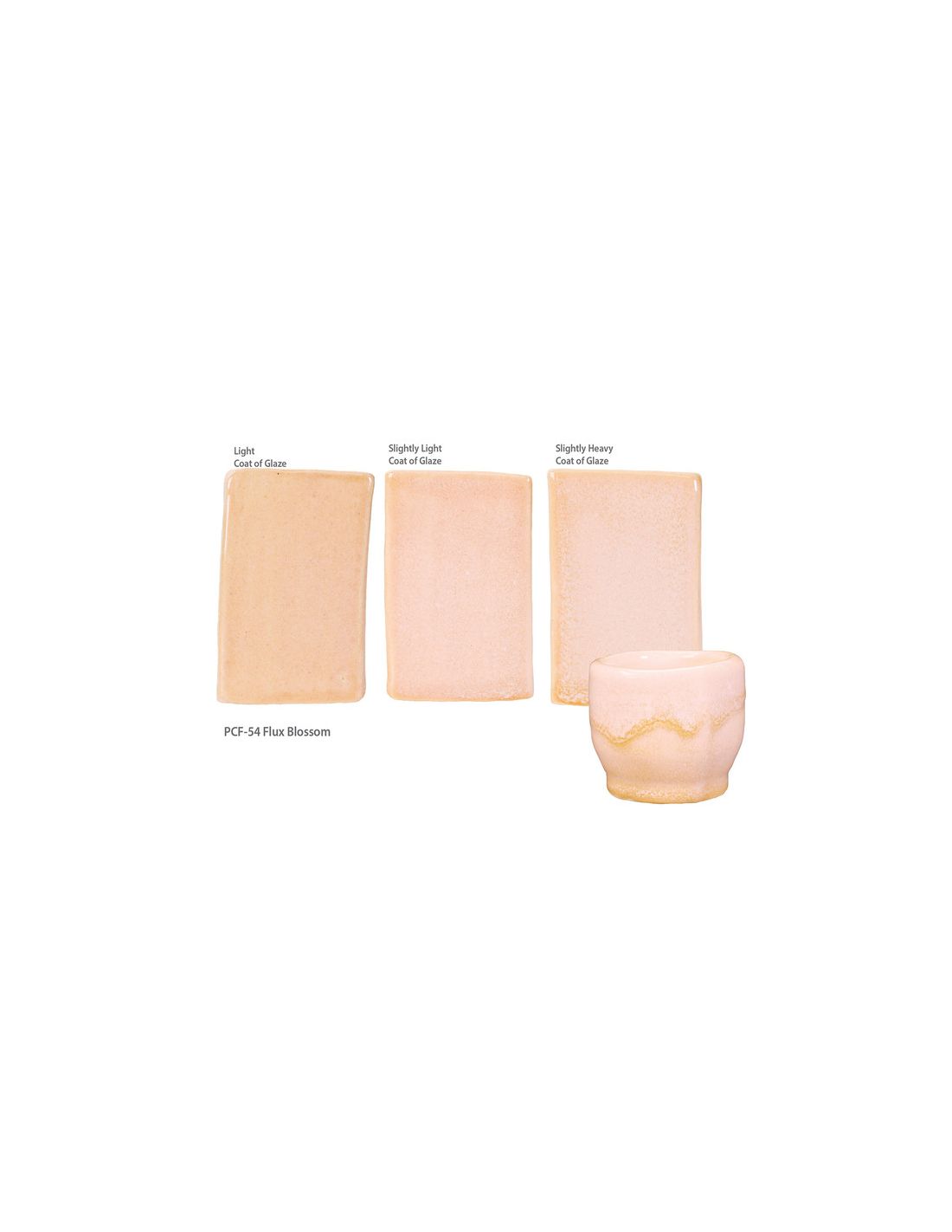 PCF54 Flux Blossom : Email rose pâle brillant, tel une fleur fraîche. Il s'intensifie sur les surfaces texturées et développe un effet pêche lorsqu'il est épais. Idéal pour être superposé à d'autres émaux, comme base ou dernière couche. Magnifique sur toutes les couleurs d'argile. Parfait à 1180°C, plus fluide à 1280°C.