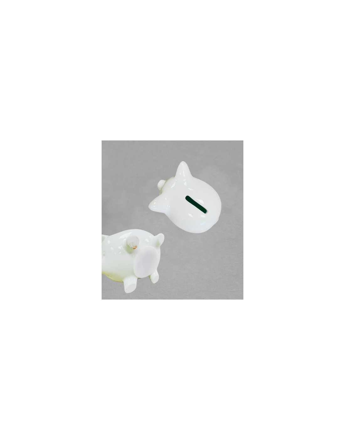 La tirelire est fermée dessous par un opercule en plastique blanc. La fente au dessus d'une longueur de 3 cm laisse passer sans problèmes les pièces de 2€.