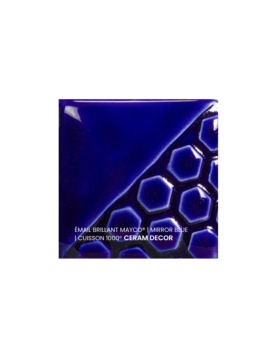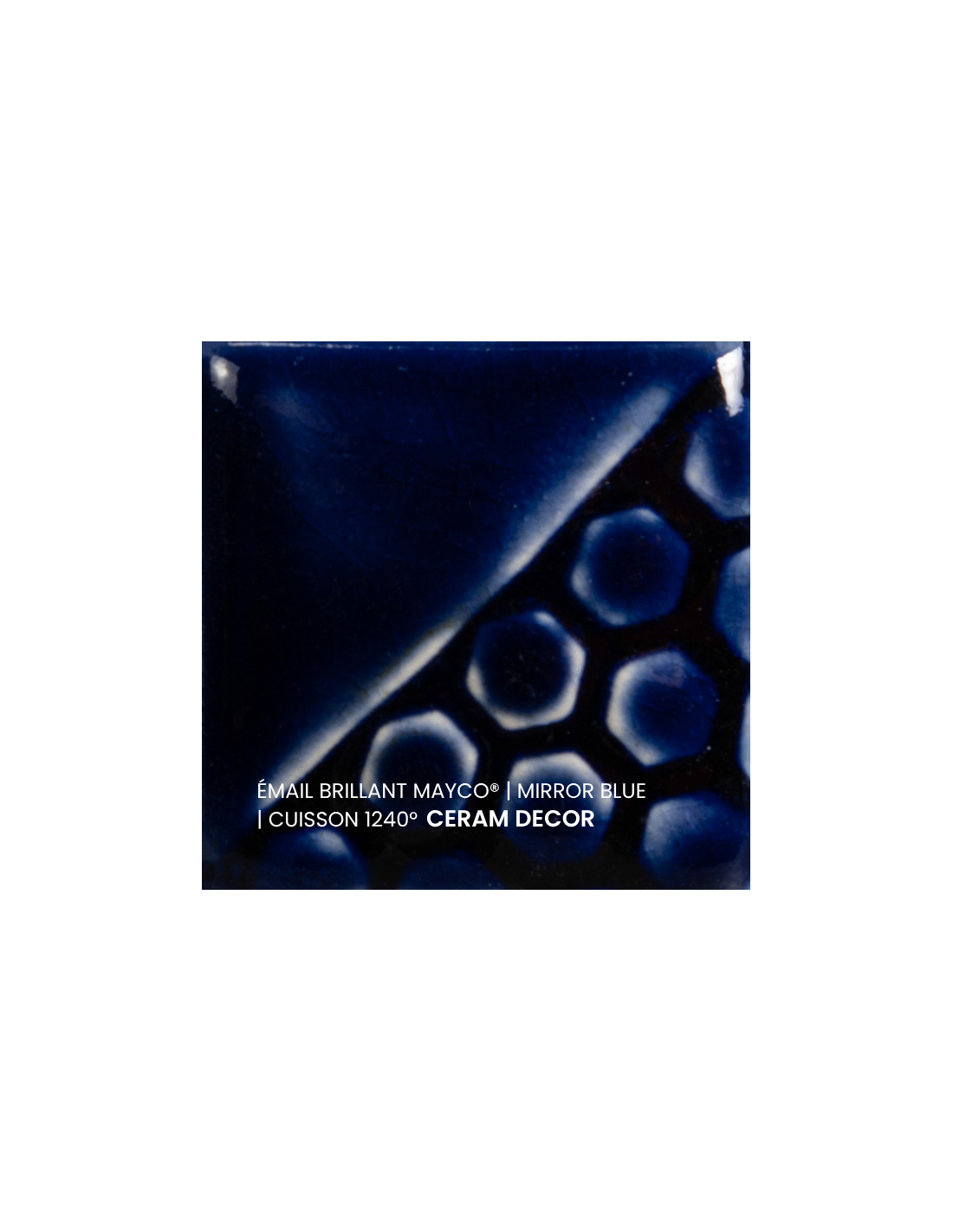 L'émail brillant mirror blue Mayco® est non toxique, pardonne tout et a un temps de séchage rapide et stable, tout en donnant à votre pièce une brillance éclatante ! Il améliore également les couleurs sous glaçure, est résistant à l'engouement et, surtout, est très facile à utiliser. Sa composition et son mode de fabrication lui assure un excellent nappage lors de la cuisson qui corrige éventuellement les défauts d'application. Il est très flexible et simple d'emploi.