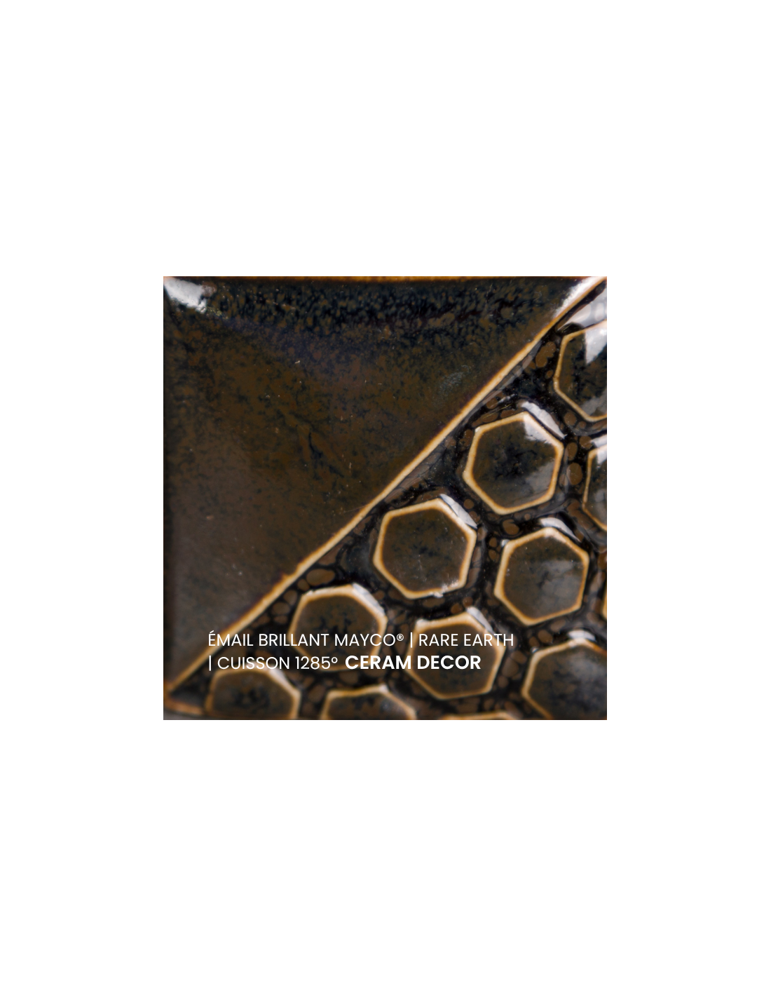 L'émail brillant rare earth Mayco® est non toxique, pardonne tout et a un temps de séchage rapide et stable, tout en donnant à votre pièce une brillance éclatante ! Il améliore également les couleurs sous glaçure, est résistant à l'engouement et, surtout, est très facile à utiliser. Sa composition et son mode de fabrication lui assure un excellent nappage lors de la cuisson qui corrige éventuellement les défauts d'application. Il est très flexible et simple d'emploi.