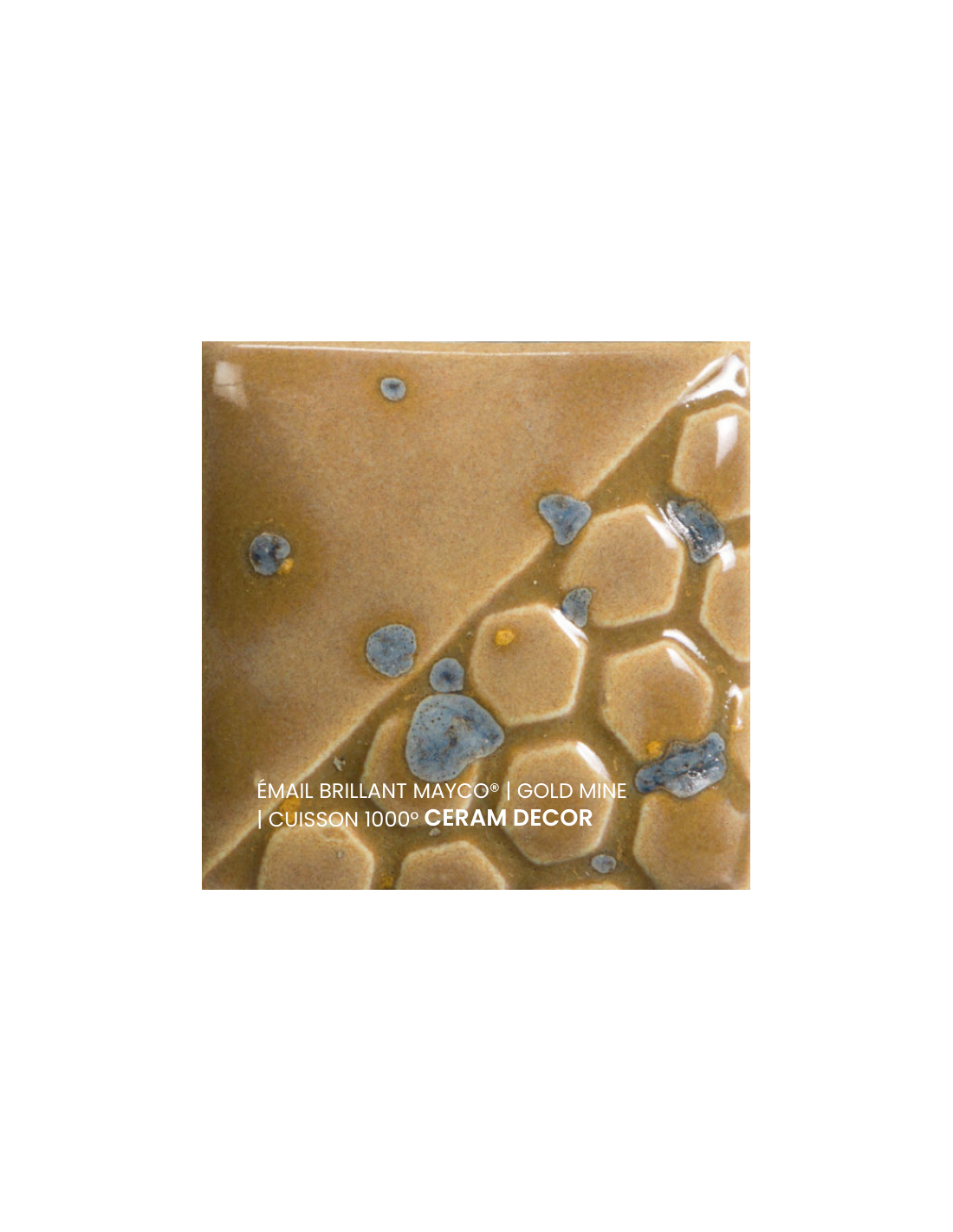 L'émail brillant gold mine Mayco® est non toxique, pardonne tout et a un temps de séchage rapide et stable, tout en donnant à votre pièce une brillance éclatante ! Il améliore également les couleurs sous glaçure, est résistant à l'engouement et, surtout, est très facile à utiliser. Sa composition et son mode de fabrication lui assure un excellent nappage lors de la cuisson qui corrige éventuellement les défauts d'application. Il est très flexible et simple d'emploi.