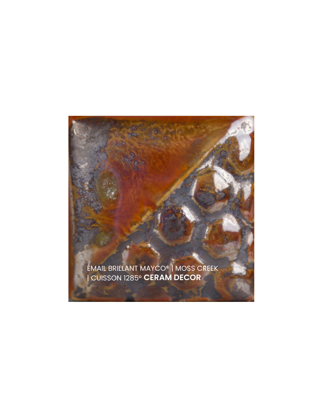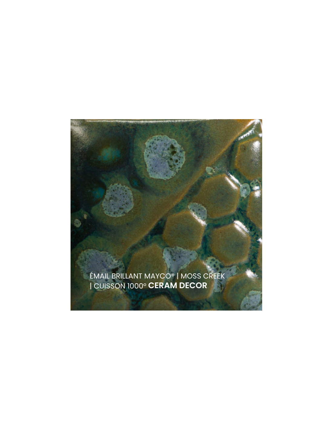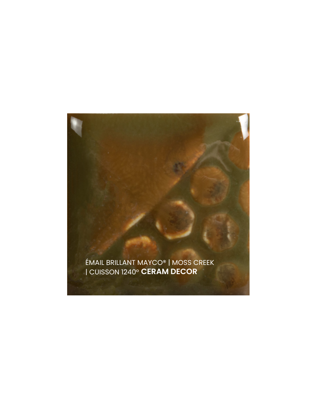 L'émail brillant moss creek Mayco® est non toxique, pardonne tout et a un temps de séchage rapide et stable, tout en donnant à votre pièce une brillance éclatante ! Il améliore également les couleurs sous glaçure, est résistant à l'engouement et, surtout, est très facile à utiliser. Sa composition et son mode de fabrication lui assure un excellent nappage lors de la cuisson qui corrige éventuellement les défauts d'application. Il est très flexible et simple d'emploi.