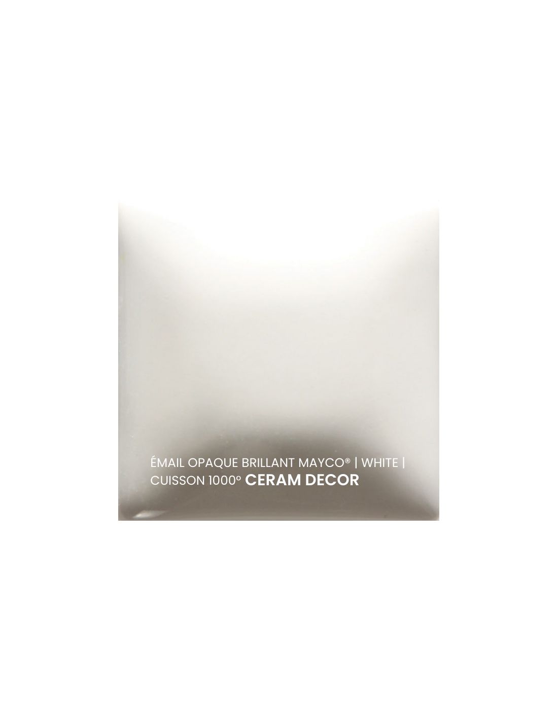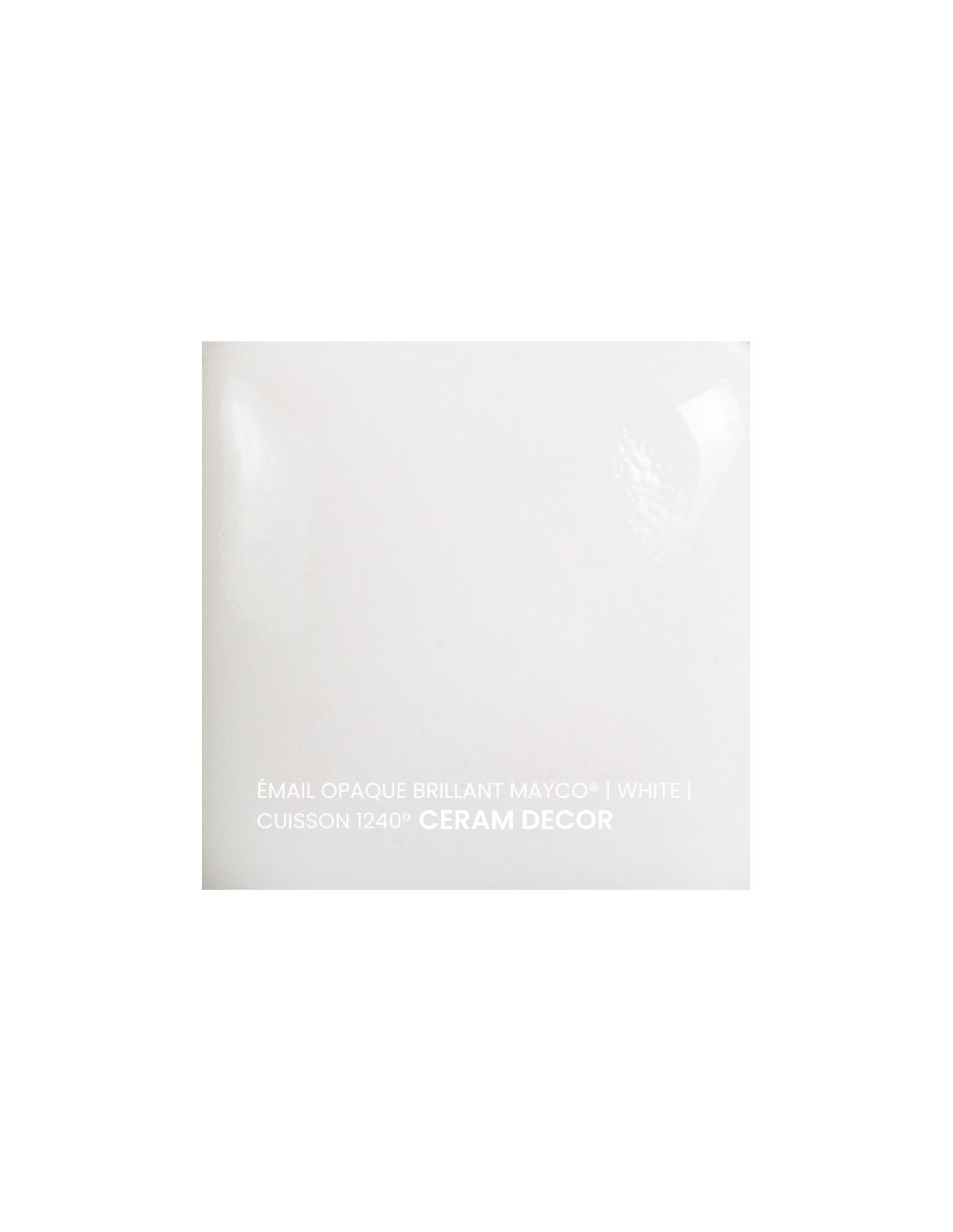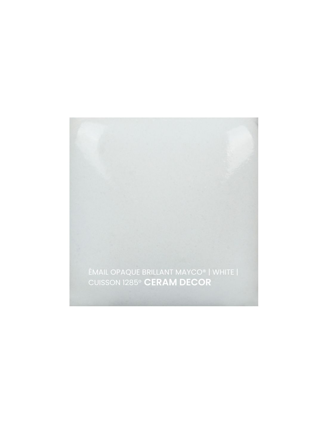 L'émail opaque brillant blanc Mayco® est non toxique, pardonne tout et a un temps de séchage rapide et stable, tout en donnant à votre pièce une brillance éclatante ! Il améliore également les couleurs sous glaçure, est résistant à l'engouement et, surtout, est très facile à utiliser. Sa composition et son mode de fabrication lui assure un excellent nappage lors de la cuisson qui corrige éventuellement les défauts d'application. Il est très flexible et simple d'emploi. Toutefois, il peut donner un reflet bleuté sur certaines terre rouges.