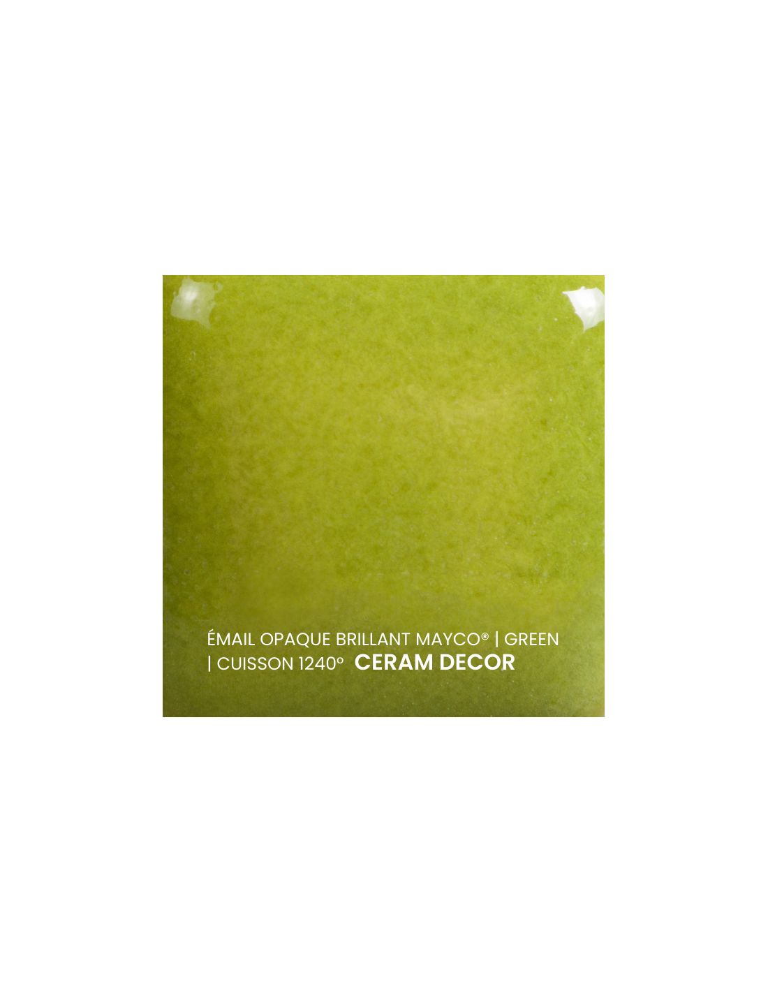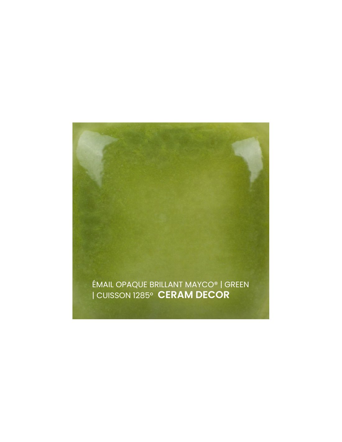 L'émail opaque brillant vert Mayco® est non toxique, pardonne tout et a un temps de séchage rapide et stable, tout en donnant à votre pièce une brillance éclatante ! Il améliore également les couleurs sous glaçure, est résistant à l'engouement et, surtout, est très facile à utiliser. Sa composition et son mode de fabrication lui assure un excellent nappage lors de la cuisson qui corrige éventuellement les défauts d'application. Il est très flexible et simple d'emploi. Toutefois, il peut donner un reflet bleuté sur certaines terre rouges.