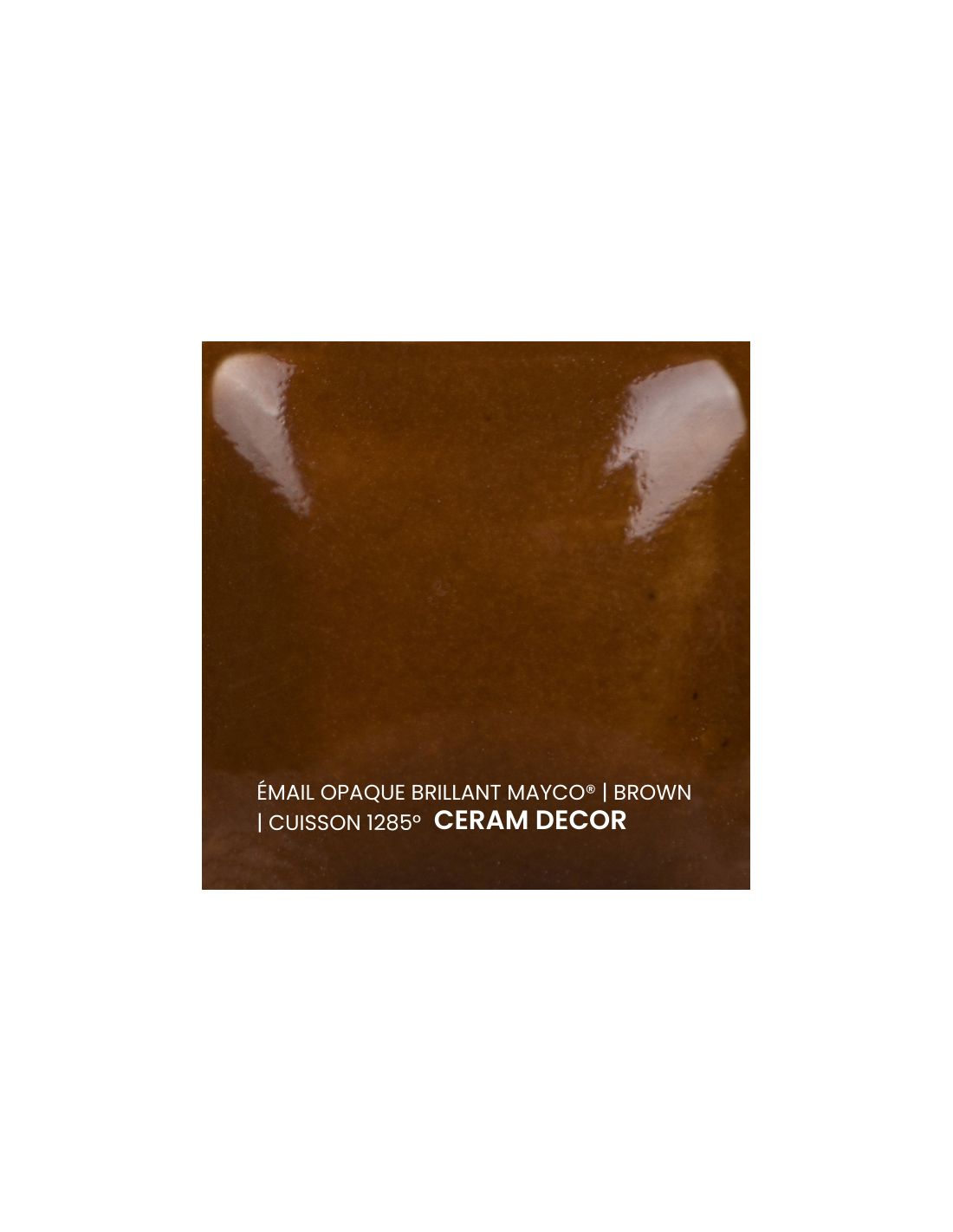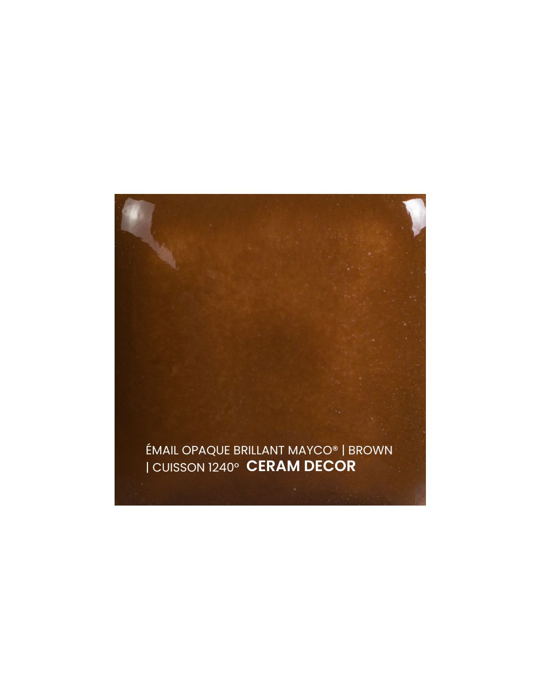 L'émail opaque brillant marron Mayco® est non toxique, pardonne tout et a un temps de séchage rapide et stable, tout en donnant à votre pièce une brillance éclatante ! Il améliore également les couleurs sous glaçure, est résistant à l'engouement et, surtout, est très facile à utiliser. Sa composition et son mode de fabrication lui assure un excellent nappage lors de la cuisson qui corrige éventuellement les défauts d'application. Il est très flexible et simple d'emploi. Toutefois, il peut donner un reflet bleuté sur certaines terre rouges.
