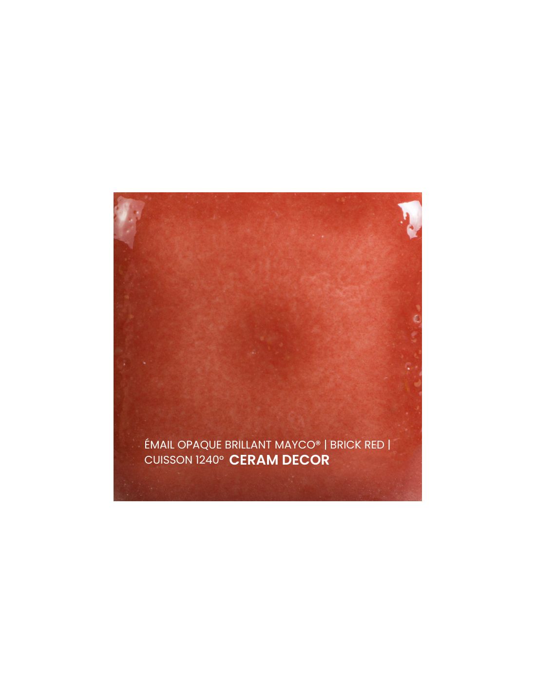 L'émail opaque brillant rouge brique Mayco® est non toxique, pardonne tout et a un temps de séchage rapide et stable, tout en donnant à votre pièce une brillance éclatante ! Il améliore également les couleurs sous glaçure, est résistant à l'engouement et, surtout, est très facile à utiliser. Sa composition et son mode de fabrication lui assure un excellent nappage lors de la cuisson qui corrige éventuellement les défauts d'application. Il est très flexible et simple d'emploi. Toutefois, il peut donner un reflet bleuté sur certaines terre rouges.