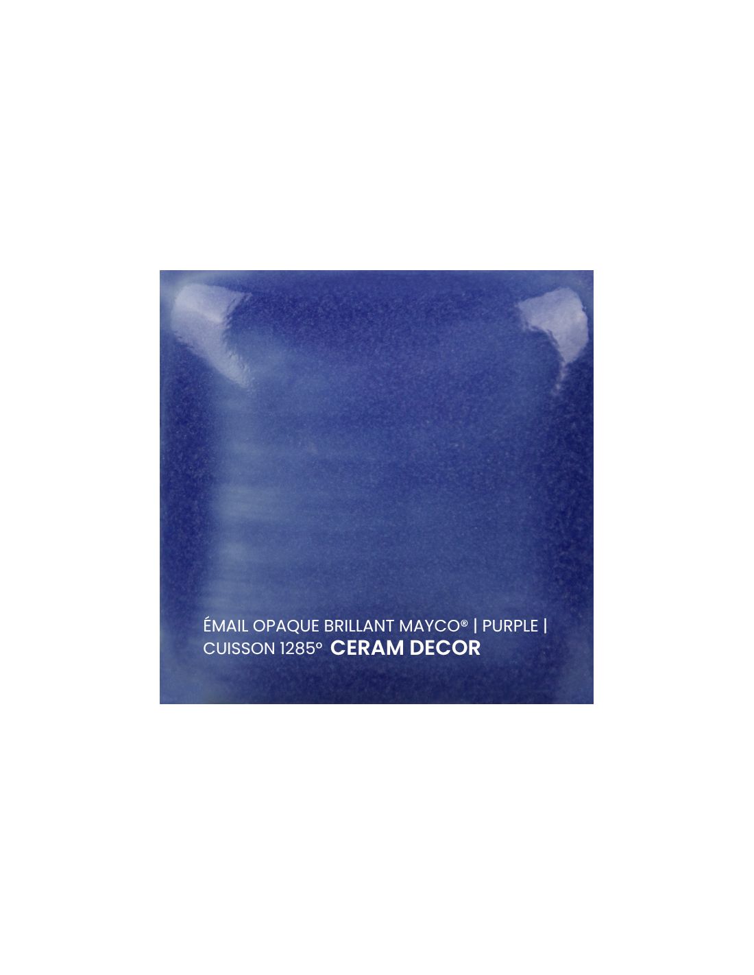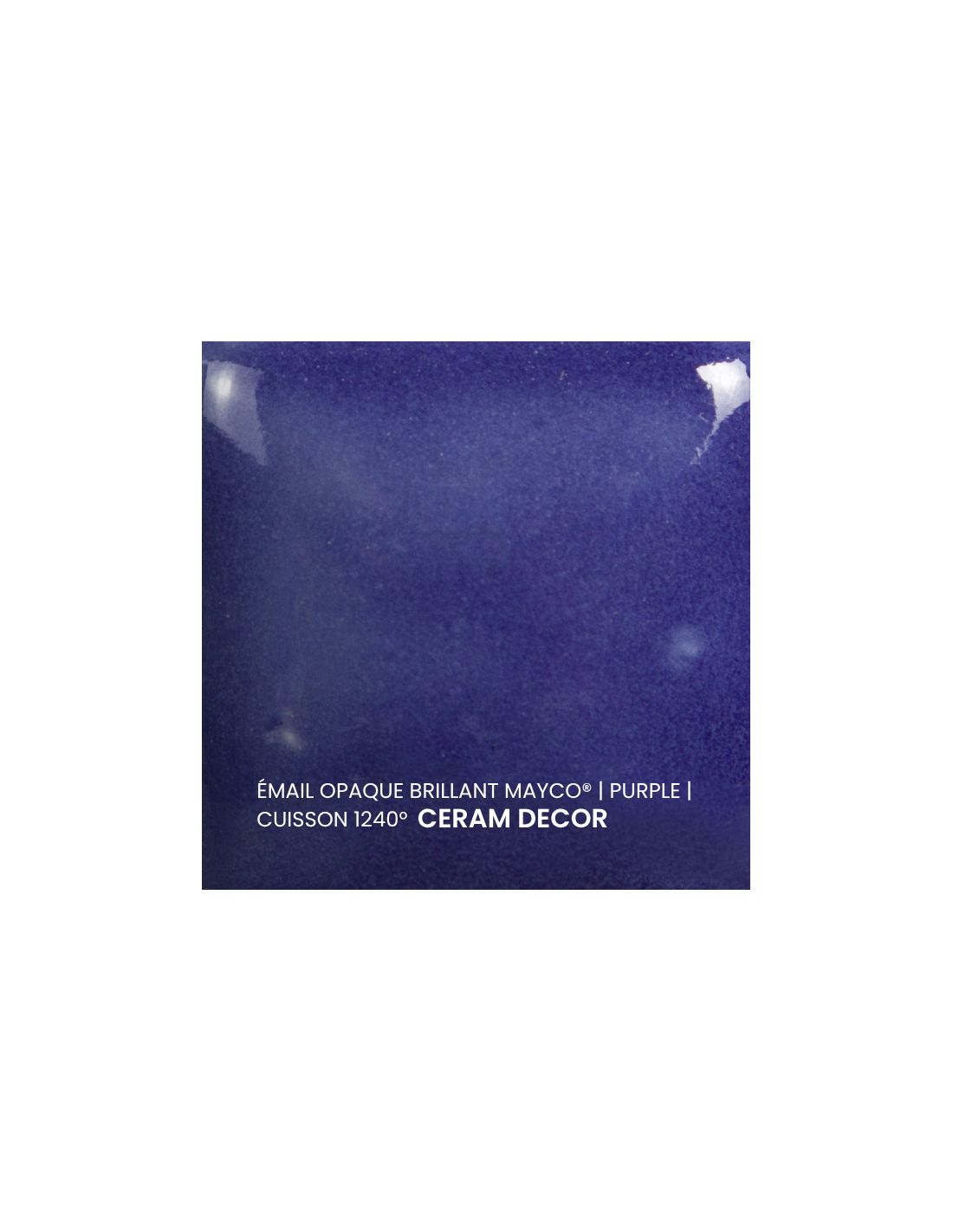 L'émail opaque brillant violet Mayco® est non toxique, pardonne tout et a un temps de séchage rapide et stable, tout en donnant à votre pièce une brillance éclatante ! Il améliore également les couleurs sous glaçure, est résistant à l'engouement et, surtout, est très facile à utiliser. Sa composition et son mode de fabrication lui assure un excellent nappage lors de la cuisson qui corrige éventuellement les défauts d'application. Il est très flexible et simple d'emploi. Toutefois, il peut donner un reflet bleuté sur certaines terre rouges.