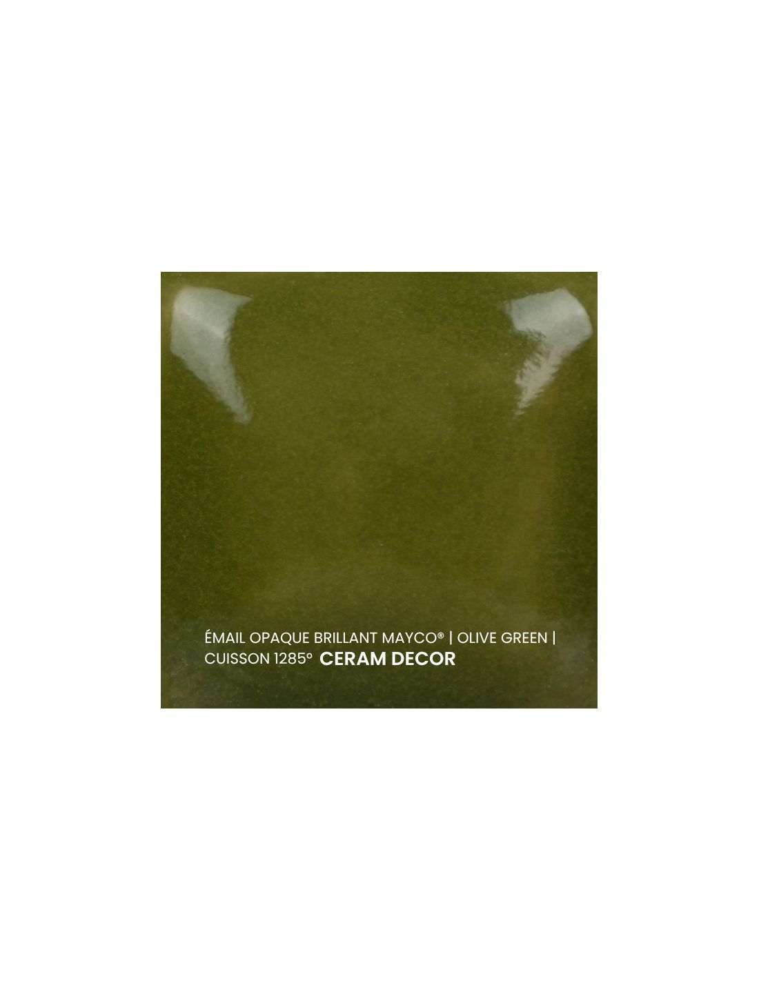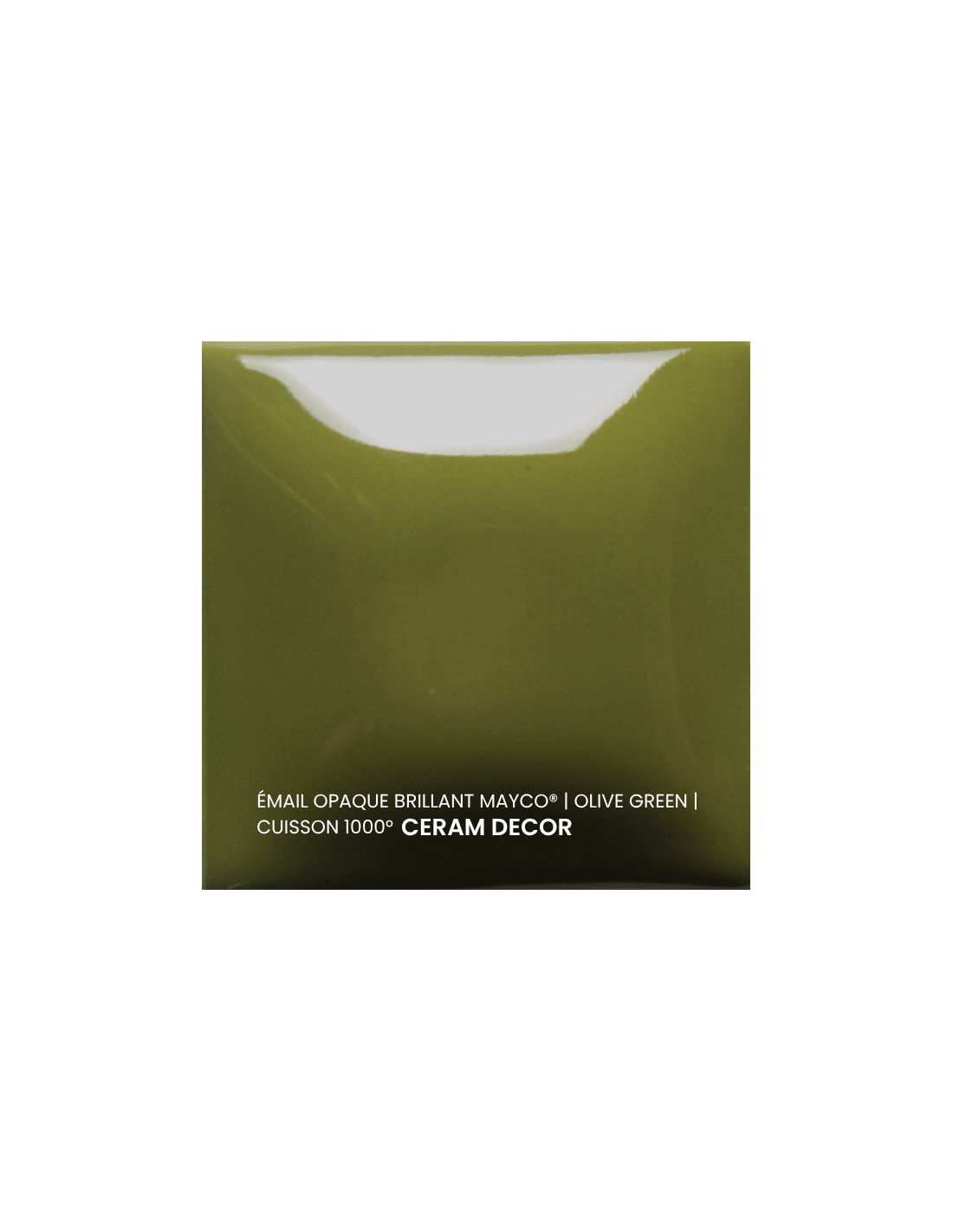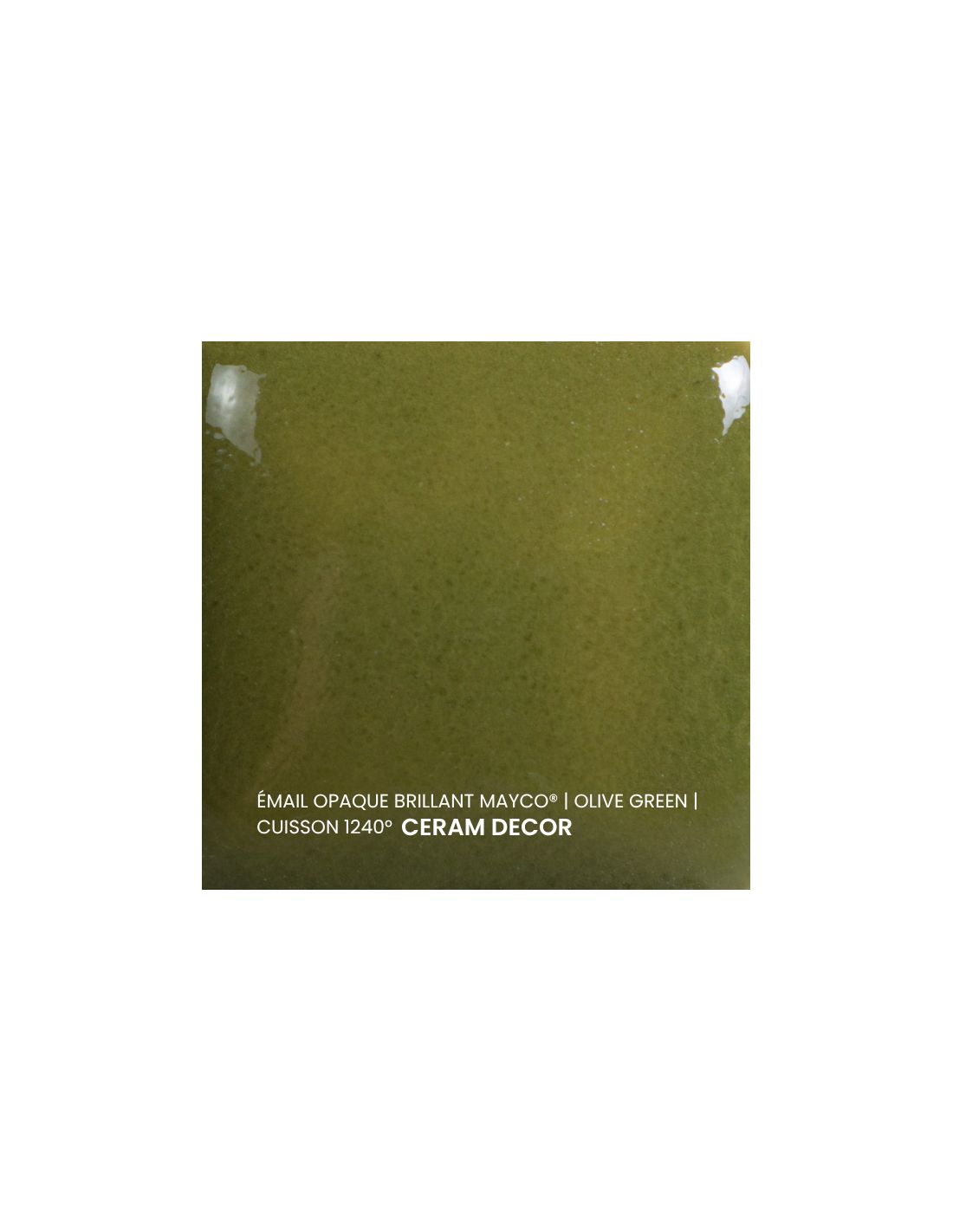 L'émail opaque brillant vert olive Mayco® est non toxique, pardonne tout et a un temps de séchage rapide et stable, tout en donnant à votre pièce une brillance éclatante ! Il améliore également les couleurs sous glaçure, est résistant à l'engouement et, surtout, est très facile à utiliser. Sa composition et son mode de fabrication lui assure un excellent nappage lors de la cuisson qui corrige éventuellement les défauts d'application. Il est très flexible et simple d'emploi. Toutefois, il peut donner un reflet bleuté sur certaines terre rouges.