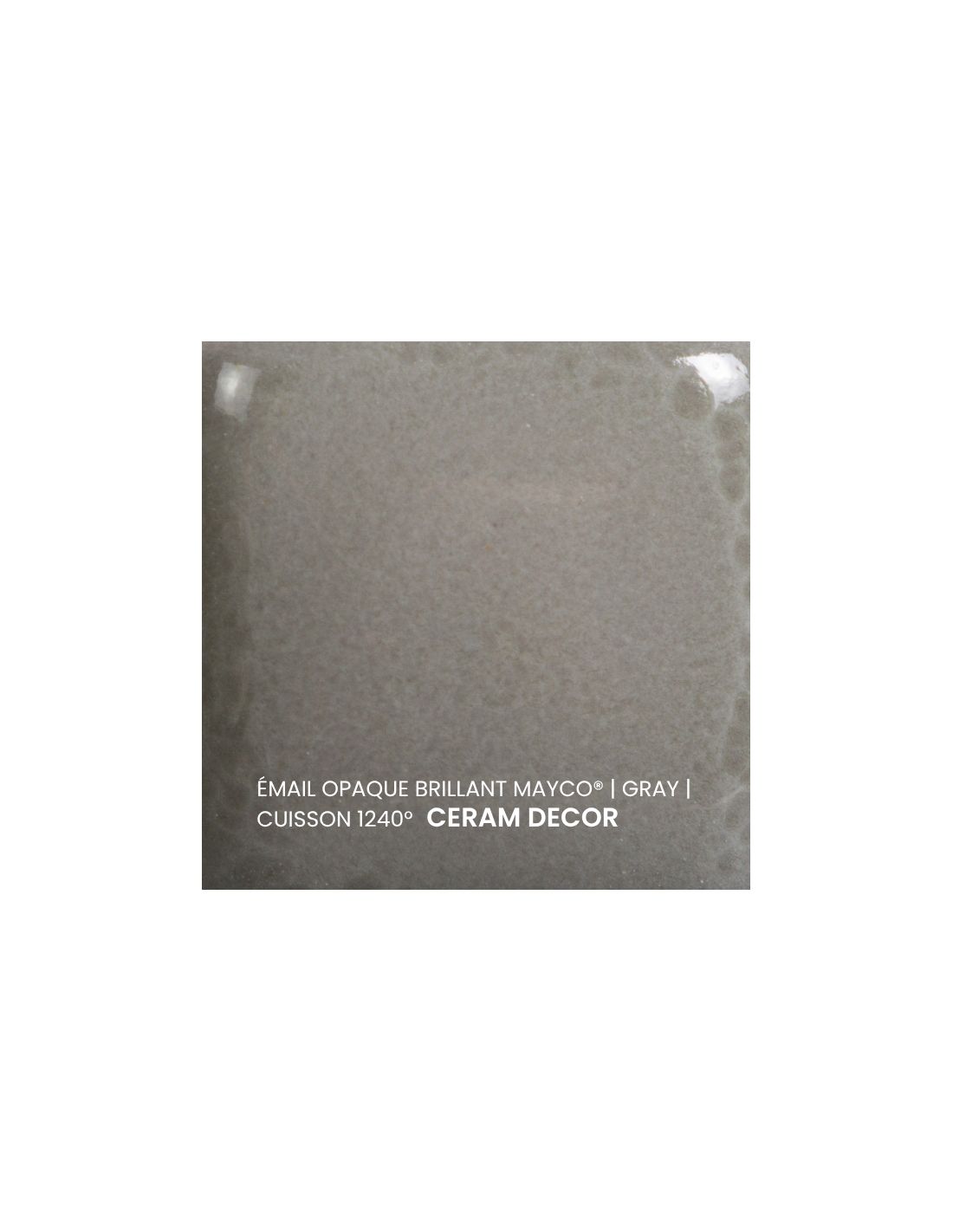 L'émail opaque brillant gris Mayco® est non toxique, pardonne tout et a un temps de séchage rapide et stable, tout en donnant à votre pièce une brillance éclatante ! Il améliore également les couleurs sous glaçure, est résistant à l'engouement et, surtout, est très facile à utiliser. Sa composition et son mode de fabrication lui assure un excellent nappage lors de la cuisson qui corrige éventuellement les défauts d'application. Il est très flexible et simple d'emploi. Toutefois, il peut donner un reflet bleuté sur certaines terre rouges.