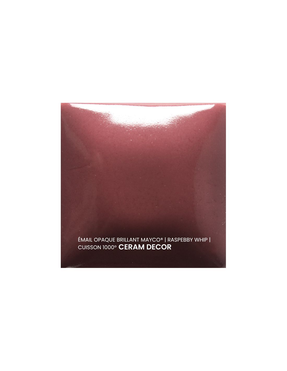 L'émail opaque brillant raspebby whip Mayco® est non toxique, pardonne tout et a un temps de séchage rapide et stable, tout en donnant à votre pièce une brillance éclatante ! Il améliore également les couleurs sous glaçure, est résistant à l'engouement et, surtout, est très facile à utiliser. Sa composition et son mode de fabrication lui assure un excellent nappage lors de la cuisson qui corrige éventuellement les défauts d'application. Il est très flexible et simple d'emploi. Toutefois, il peut donner un reflet bleuté sur certaines terre rouges.