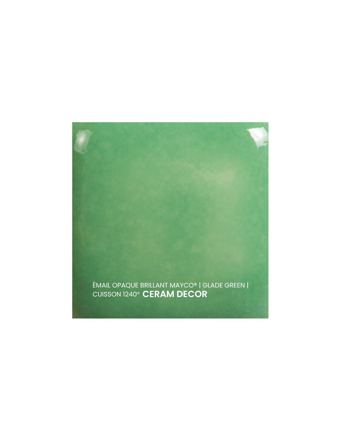 L'émail opaque brillant vert gazon Mayco® est non toxique, pardonne tout et a un temps de séchage rapide et stable, tout en donnant à votre pièce une brillance éclatante ! Il améliore également les couleurs sous glaçure, est résistant à l'engouement et, surtout, est très facile à utiliser. Sa composition et son mode de fabrication lui assure un excellent nappage lors de la cuisson qui corrige éventuellement les défauts d'application. Il est très flexible et simple d'emploi. Toutefois, il peut donner un reflet bleuté sur certaines terre rouges.