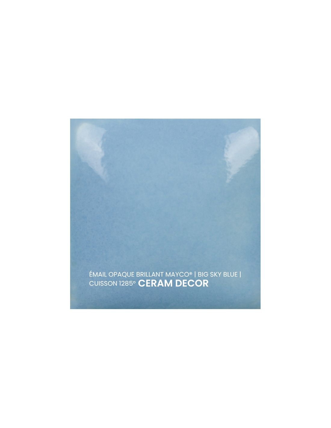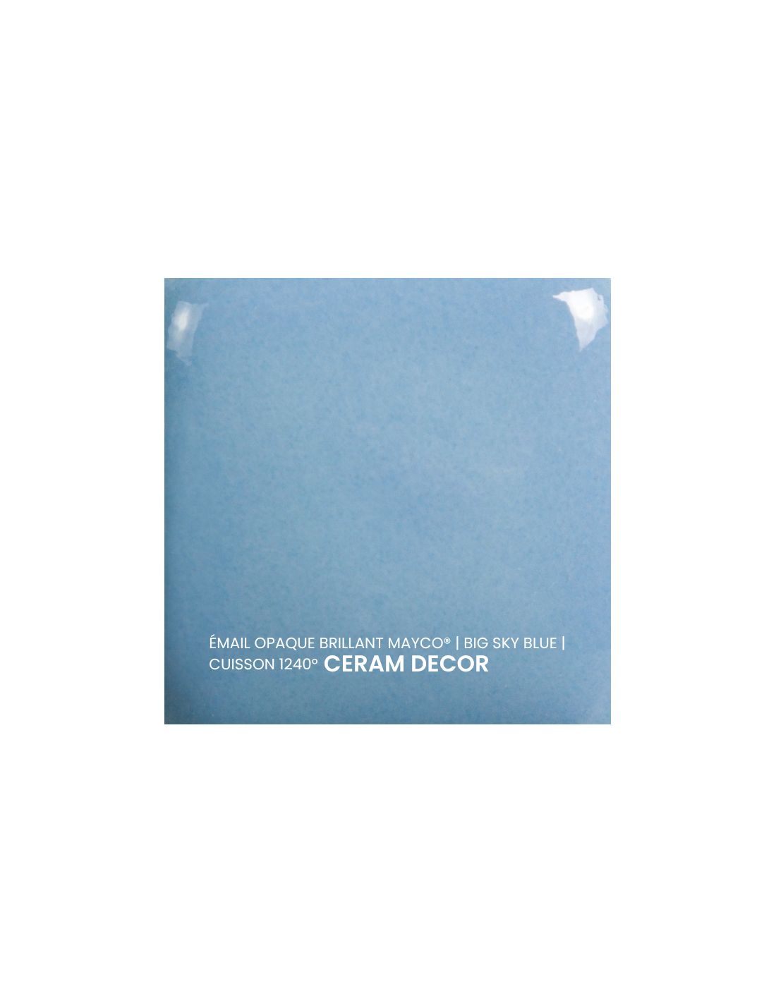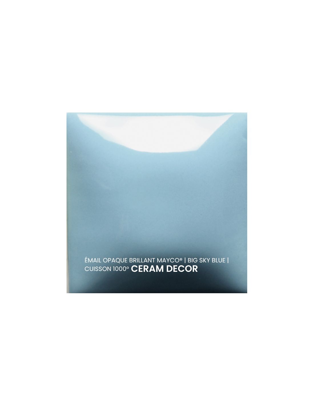 L'émail opaque brillant big sky blue Mayco® est non toxique, pardonne tout et a un temps de séchage rapide et stable, tout en donnant à votre pièce une brillance éclatante ! Il améliore également les couleurs sous glaçure, est résistant à l'engouement et, surtout, est très facile à utiliser. Sa composition et son mode de fabrication lui assure un excellent nappage lors de la cuisson qui corrige éventuellement les défauts d'application. Il est très flexible et simple d'emploi. Toutefois, il peut donner un reflet bleuté sur certaines terre rouges.
