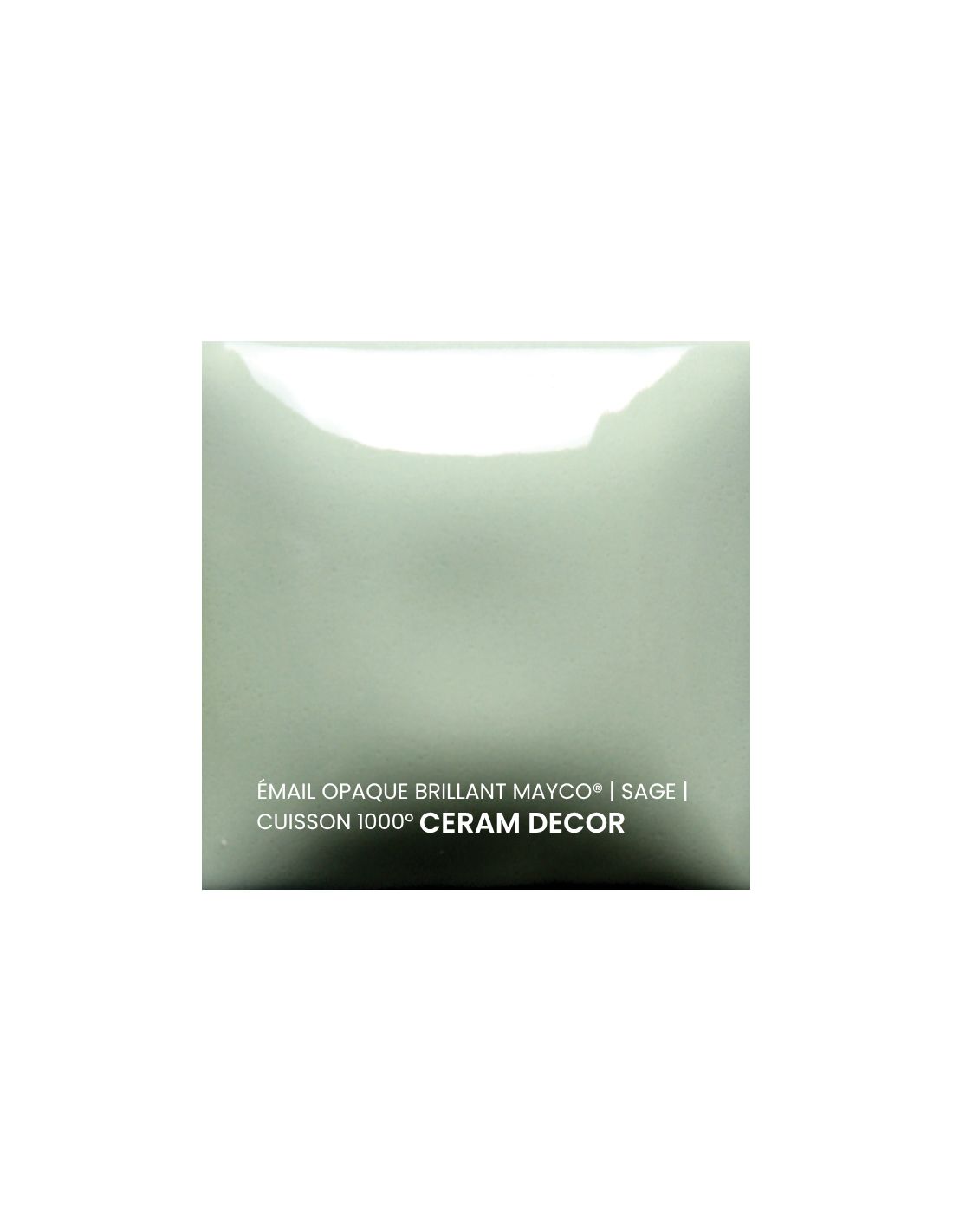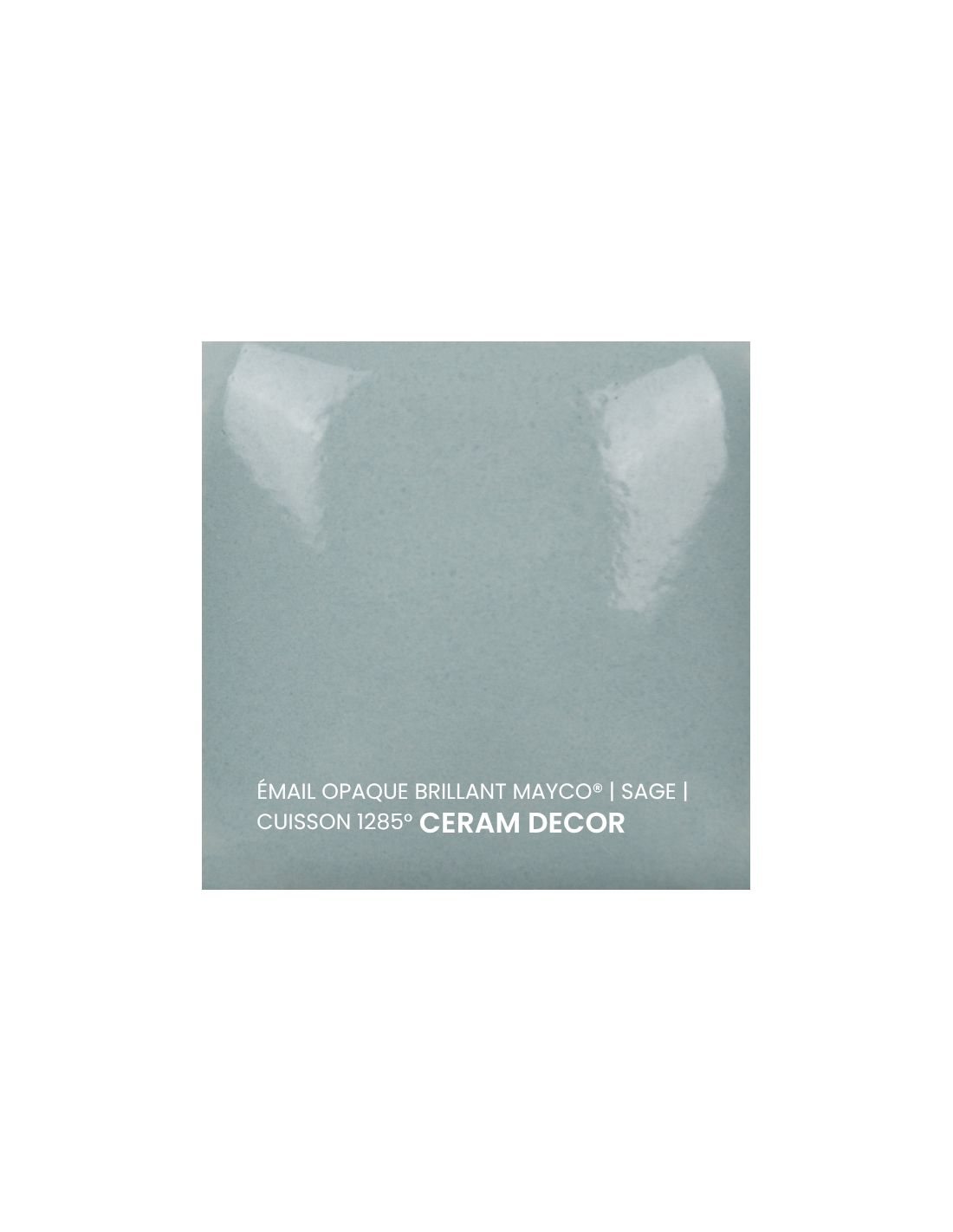 L'émail opaque brillant sage Mayco® est non toxique, pardonne tout et a un temps de séchage rapide et stable, tout en donnant à votre pièce une brillance éclatante ! Il améliore également les couleurs sous glaçure, est résistant à l'engouement et, surtout, est très facile à utiliser. Sa composition et son mode de fabrication lui assure un excellent nappage lors de la cuisson qui corrige éventuellement les défauts d'application. Il est très flexible et simple d'emploi. Toutefois, il peut donner un reflet bleuté sur certaines terre rouges.