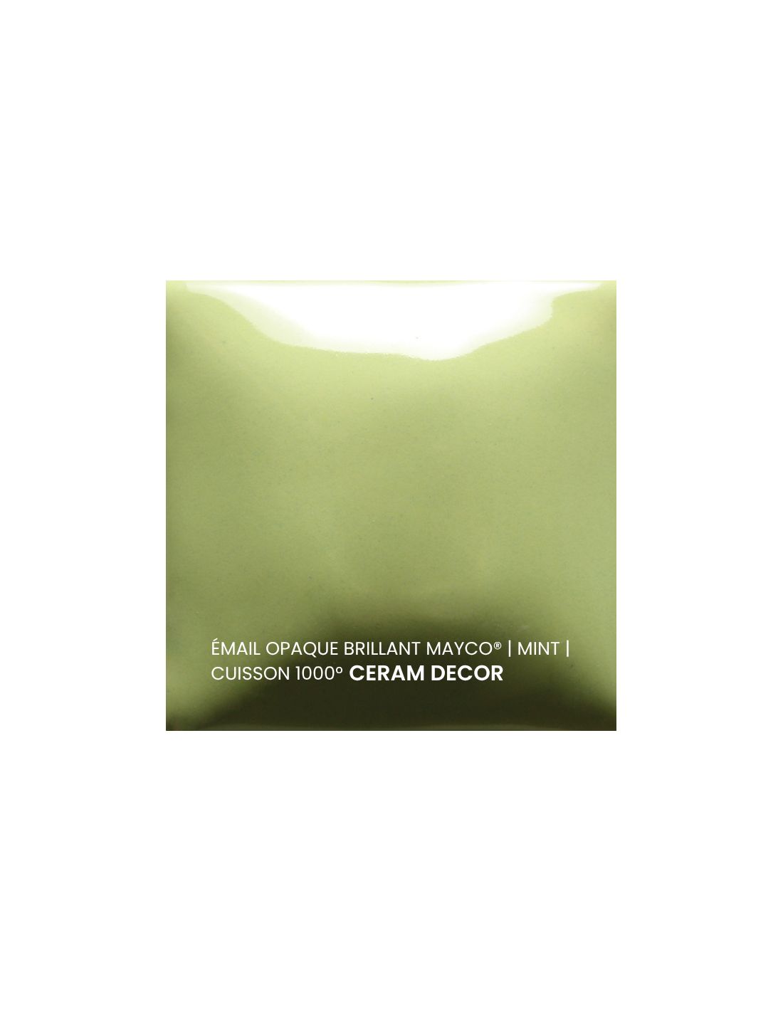 L'émail opaque brillant menthe Mayco® est non toxique, pardonne tout et a un temps de séchage rapide et stable, tout en donnant à votre pièce une brillance éclatante ! Il améliore également les couleurs sous glaçure, est résistant à l'engouement et, surtout, est très facile à utiliser. Sa composition et son mode de fabrication lui assure un excellent nappage lors de la cuisson qui corrige éventuellement les défauts d'application. Il est très flexible et simple d'emploi. Toutefois, il peut donner un reflet bleuté sur certaines terre rouges.