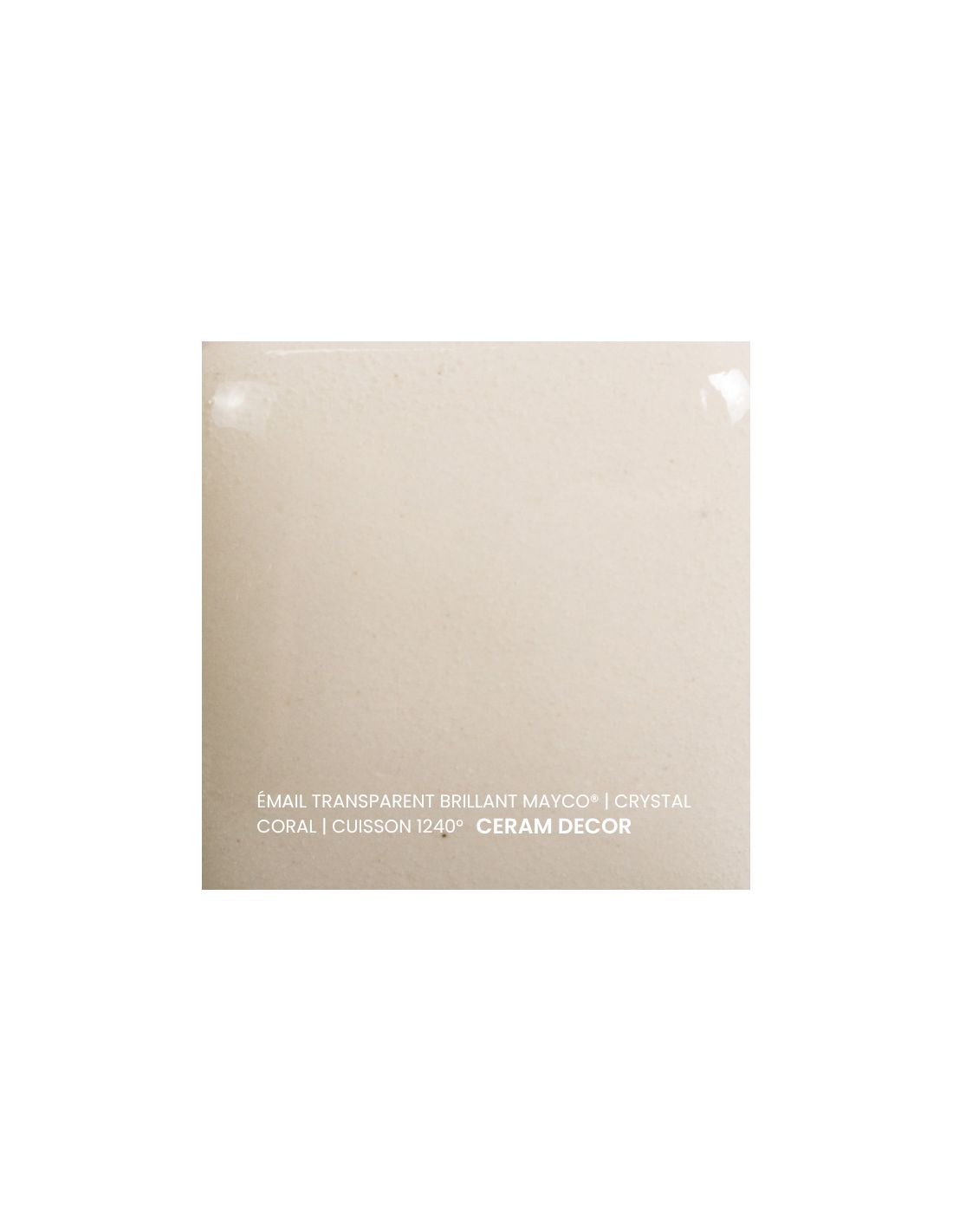 L'émail transparent brillant crystal coral Mayco® est non toxique, pardonne tout et a un temps de séchage rapide et stable, tout en donnant à votre pièce une brillance éclatante ! Il améliore également les couleurs sous glaçure, est résistant à l'engouement et, surtout, est très facile à utiliser. Sa composition et son mode de fabrication lui assure un excellent nappage lors de la cuisson qui corrige éventuellement les défauts d'application. Il est très flexible et simple d'emploi. Toutefois, il peut donner un reflet bleuté sur certaines terre rouges.