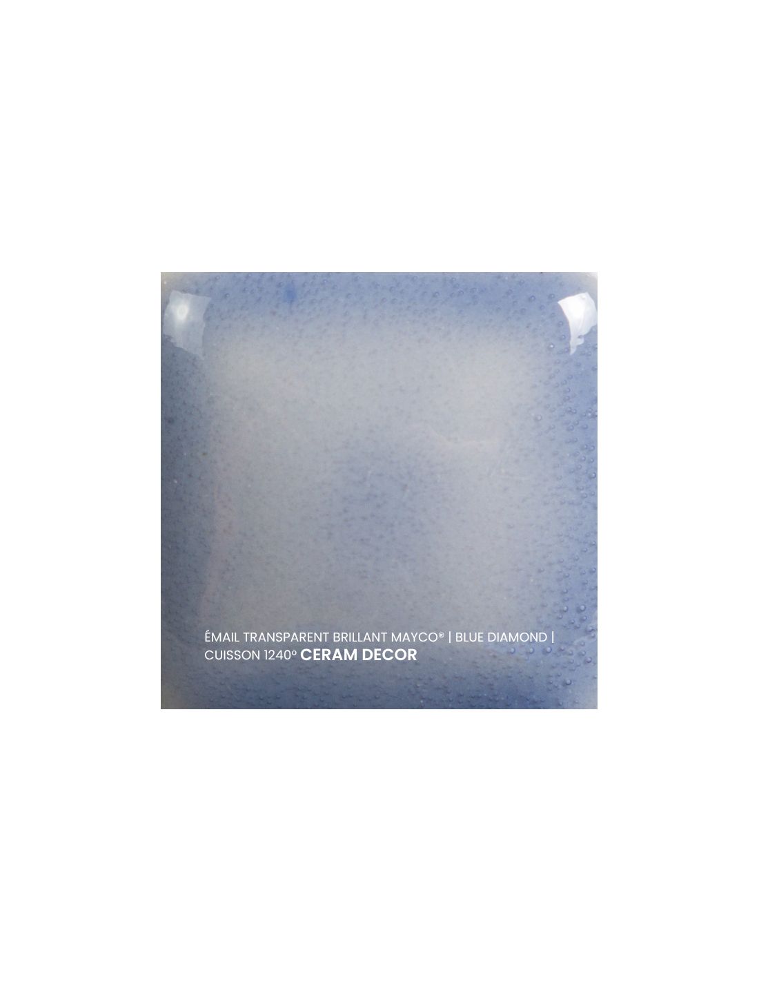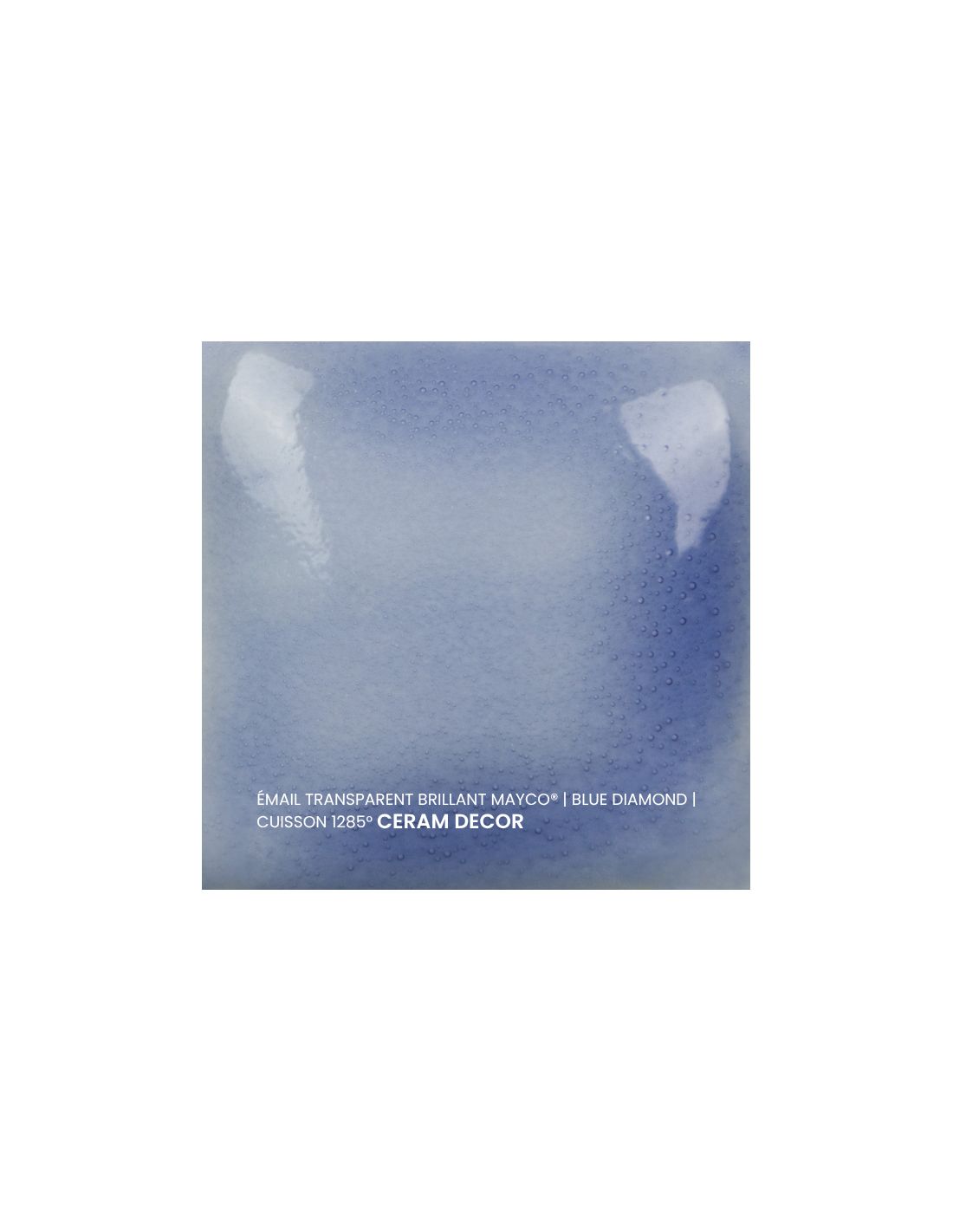 L'émail transparent brillant blue diamond Mayco® est non toxique, pardonne tout et a un temps de séchage rapide et stable, tout en donnant à votre pièce une brillance éclatante ! Il améliore également les couleurs sous glaçure, est résistant à l'engouement et, surtout, est très facile à utiliser. Sa composition et son mode de fabrication lui assure un excellent nappage lors de la cuisson qui corrige éventuellement les défauts d'application. Il est très flexible et simple d'emploi. Toutefois, il peut donner un reflet bleuté sur certaines terre rouges.