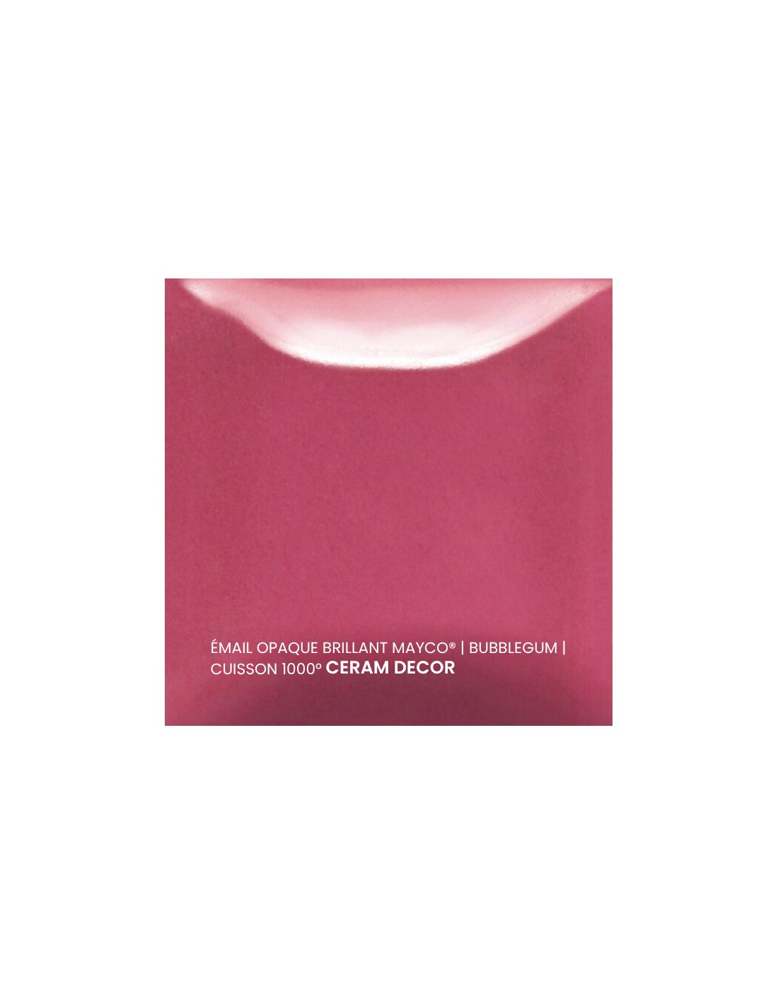 L'émail opaque brillant bubblegum Mayco® est non toxique, pardonne tout et a un temps de séchage rapide et stable, tout en donnant à votre pièce une brillance éclatante ! Il améliore également les couleurs sous glaçure, est résistant à l'engouement et, surtout, est très facile à utiliser. Sa composition et son mode de fabrication lui assure un excellent nappage lors de la cuisson qui corrige éventuellement les défauts d'application. Il est très flexible et simple d'emploi. Toutefois, il peut donner un reflet bleuté sur certaines terre rouges.