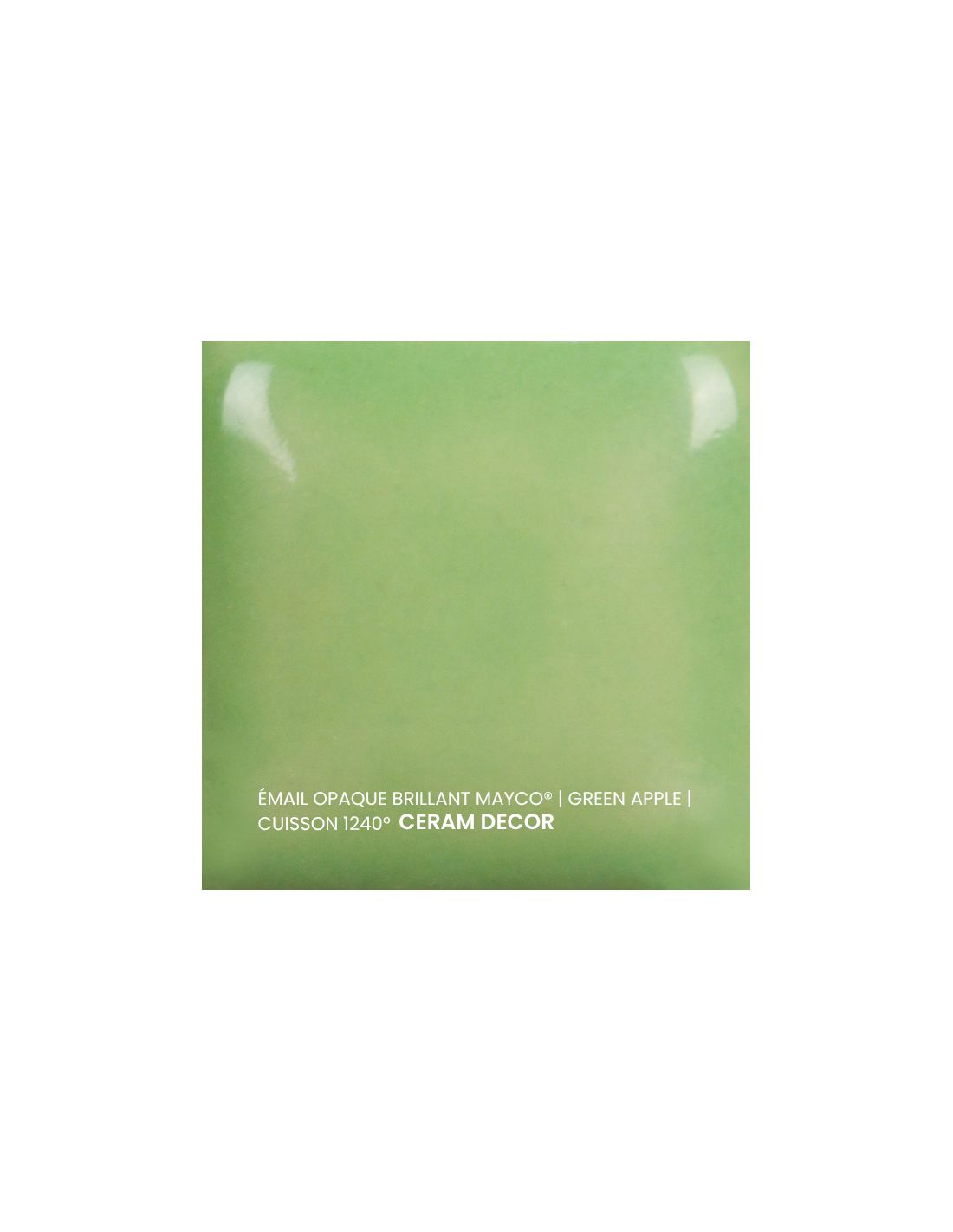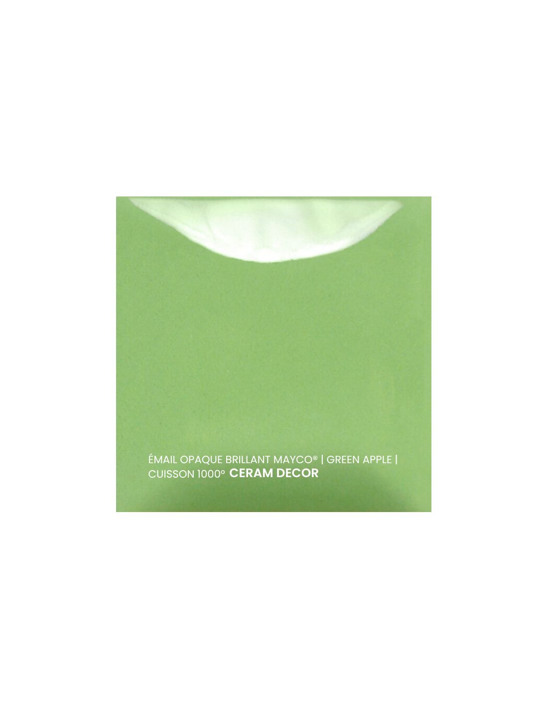 L'émail opaque brillant green apple Mayco® est non toxique, pardonne tout et a un temps de séchage rapide et stable, tout en donnant à votre pièce une brillance éclatante ! Il améliore également les couleurs sous glaçure, est résistant à l'engouement et, surtout, est très facile à utiliser. Sa composition et son mode de fabrication lui assure un excellent nappage lors de la cuisson qui corrige éventuellement les défauts d'application. Il est très flexible et simple d'emploi. Toutefois, il peut donner un reflet bleuté sur certaines terre rouges.