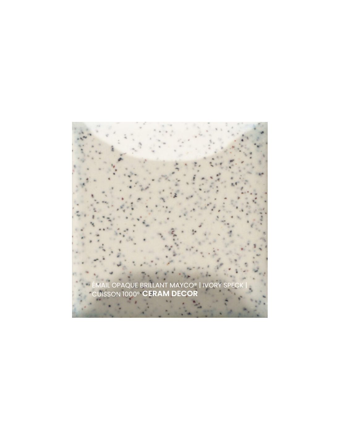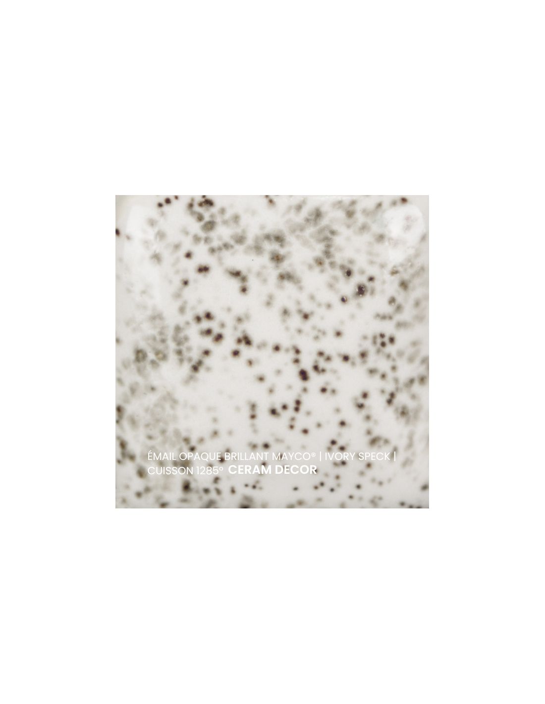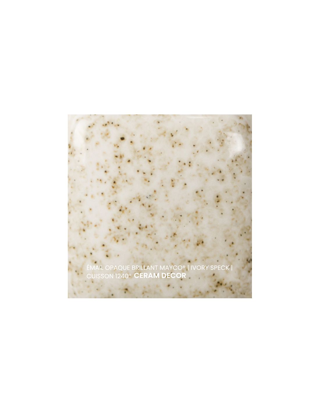 L'émail opaque brillant ivory speck Mayco® est non toxique, pardonne tout et a un temps de séchage rapide et stable, tout en donnant à votre pièce une brillance éclatante ! Il améliore également les couleurs sous glaçure, est résistant à l'engouement et, surtout, est très facile à utiliser. Sa composition et son mode de fabrication lui assure un excellent nappage lors de la cuisson qui corrige éventuellement les défauts d'application. Il est très flexible et simple d'emploi. Toutefois, il peut donner un reflet bleuté sur certaines terre rouges.