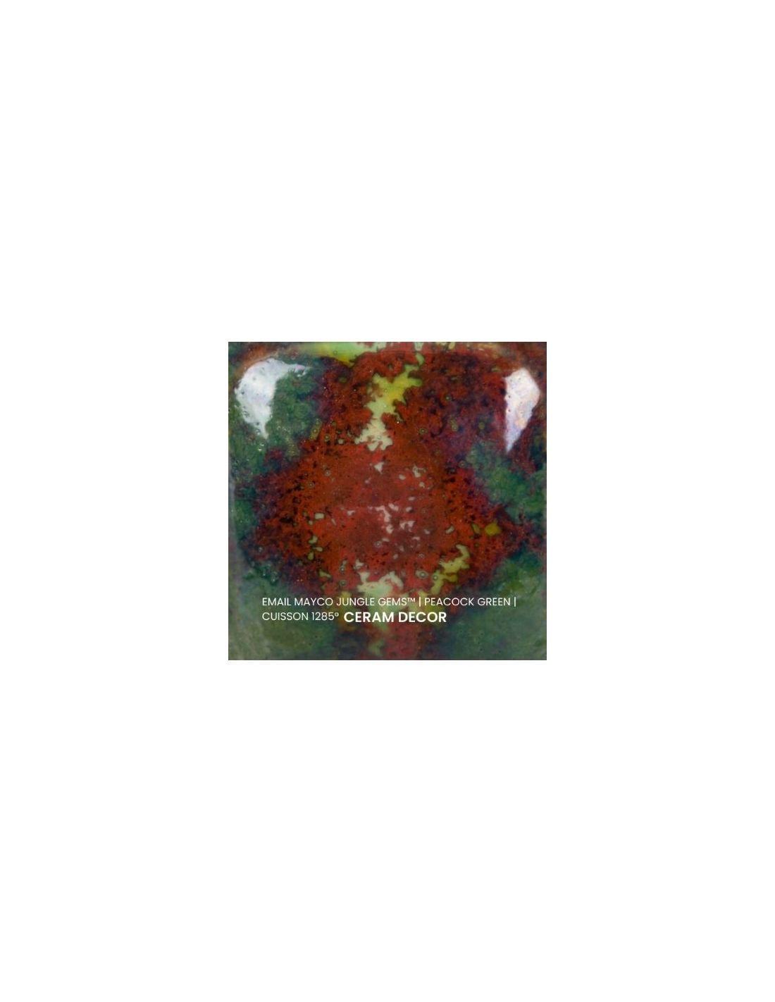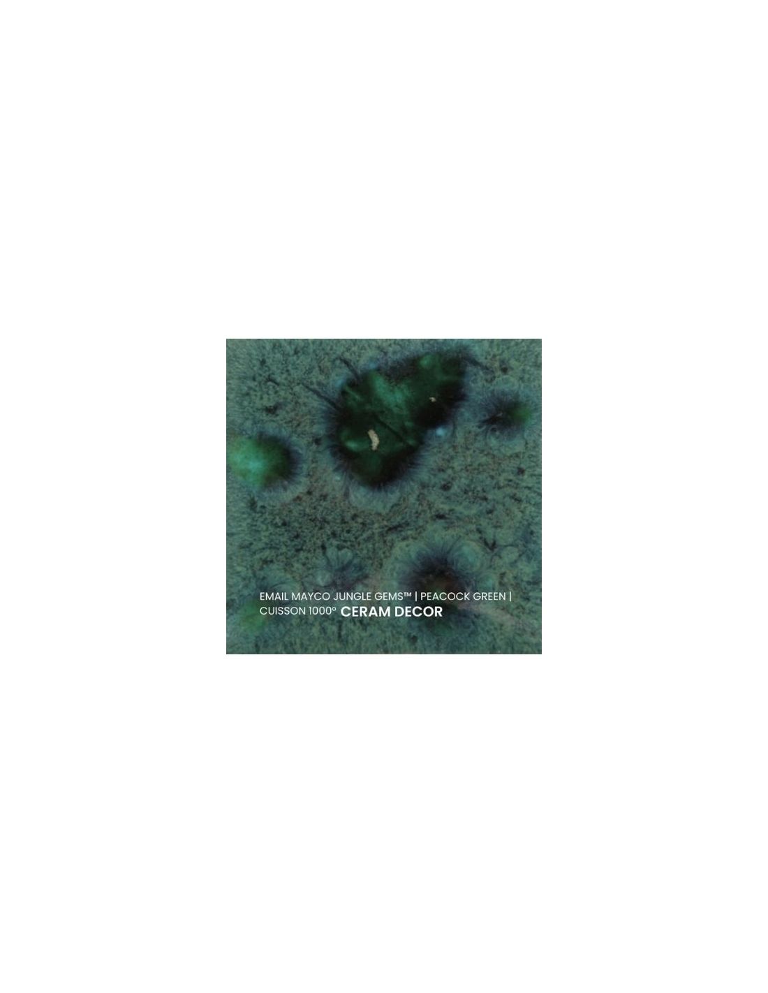 L'émail peacock green de la série "Jungle Gems" Mayco® se compose d'une couleur de fond et de cristaux brillants colorés. Il est non toxique, possède un temps de séchage rapide et stable, tout en donnant à votre pièce un résultat étonnant! Sa composition et son mode de fabrication lui assure un excellent nappage lors de la cuisson qui corrige éventuellement les défauts d'application. Il est très flexible et simple d'emploi. Chaque émaillage est différent, les cristaux s'étalent sur les pièces plates et coulent sur les pièces verticales. Ils peuvent être superposés ou mélangés pour donner des effets spéciaux.