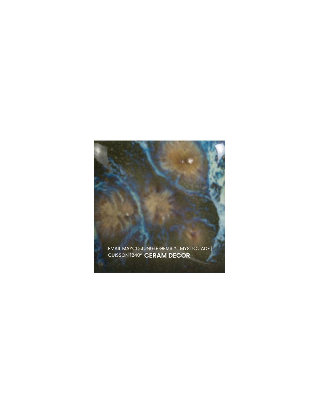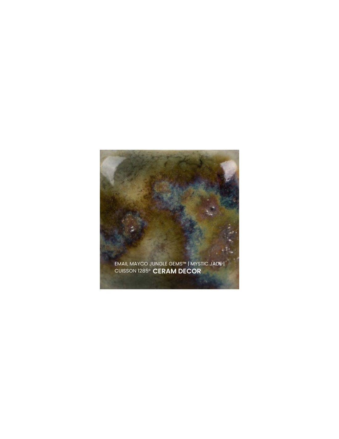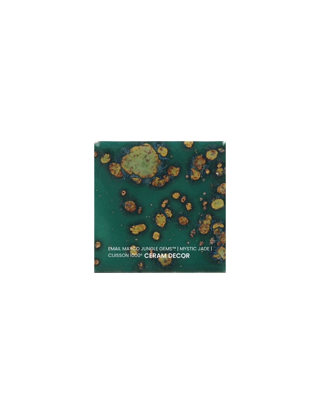 L'émail mystic jade de la série "Jungle Gems" Mayco® se compose d'une couleur de fond et de cristaux brillants colorés. Il est non toxique, possède un temps de séchage rapide et stable, tout en donnant à votre pièce un résultat étonnant! Sa composition et son mode de fabrication lui assure un excellent nappage lors de la cuisson qui corrige éventuellement les défauts d'application. Il est très flexible et simple d'emploi. Chaque émaillage est différent, les cristaux s'étalent sur les pièces plates et coulent sur les pièces verticales. Ils peuvent être superposés ou mélangés pour donner des effets spéciaux.