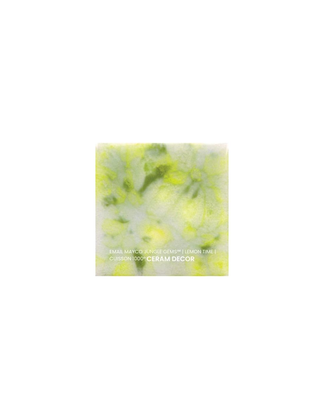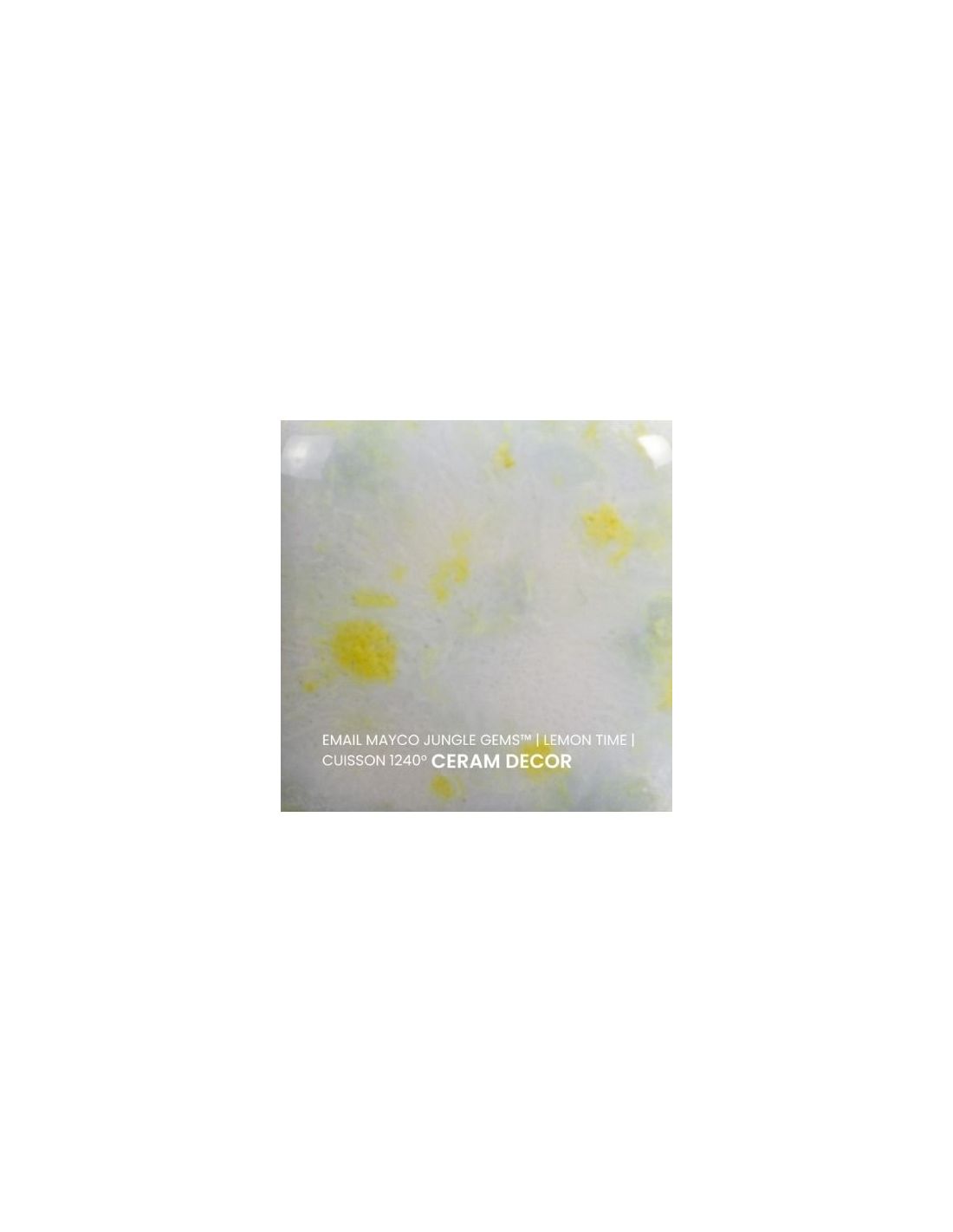 L'émail lemon lime de la série "Jungle Gems" Mayco® se compose d'une couleur de fond et de cristaux brillants colorés. Il est non toxique, possède un temps de séchage rapide et stable, tout en donnant à votre pièce un résultat étonnant! Sa composition et son mode de fabrication lui assure un excellent nappage lors de la cuisson qui corrige éventuellement les défauts d'application. Il est très flexible et simple d'emploi. Chaque émaillage est différent, les cristaux s'étalent sur les pièces plates et coulent sur les pièces verticales. Ils peuvent être superposés ou mélangés pour donner des effets spéciaux.