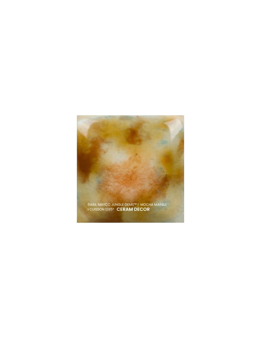 L'émail mocha marble de la série "Jungle Gems" Mayco® se compose d'une couleur de fond et de cristaux brillants colorés. Il est non toxique, possède un temps de séchage rapide et stable, tout en donnant à votre pièce un résultat étonnant! Sa composition et son mode de fabrication lui assure un excellent nappage lors de la cuisson qui corrige éventuellement les défauts d'application. Il est très flexible et simple d'emploi. Chaque émaillage est différent, les cristaux s'étalent sur les pièces plates et coulent sur les pièces verticales. Ils peuvent être superposés ou mélangés pour donner des effets spéciaux.