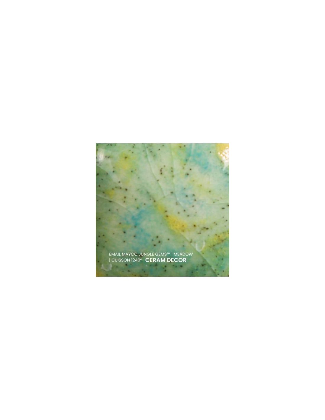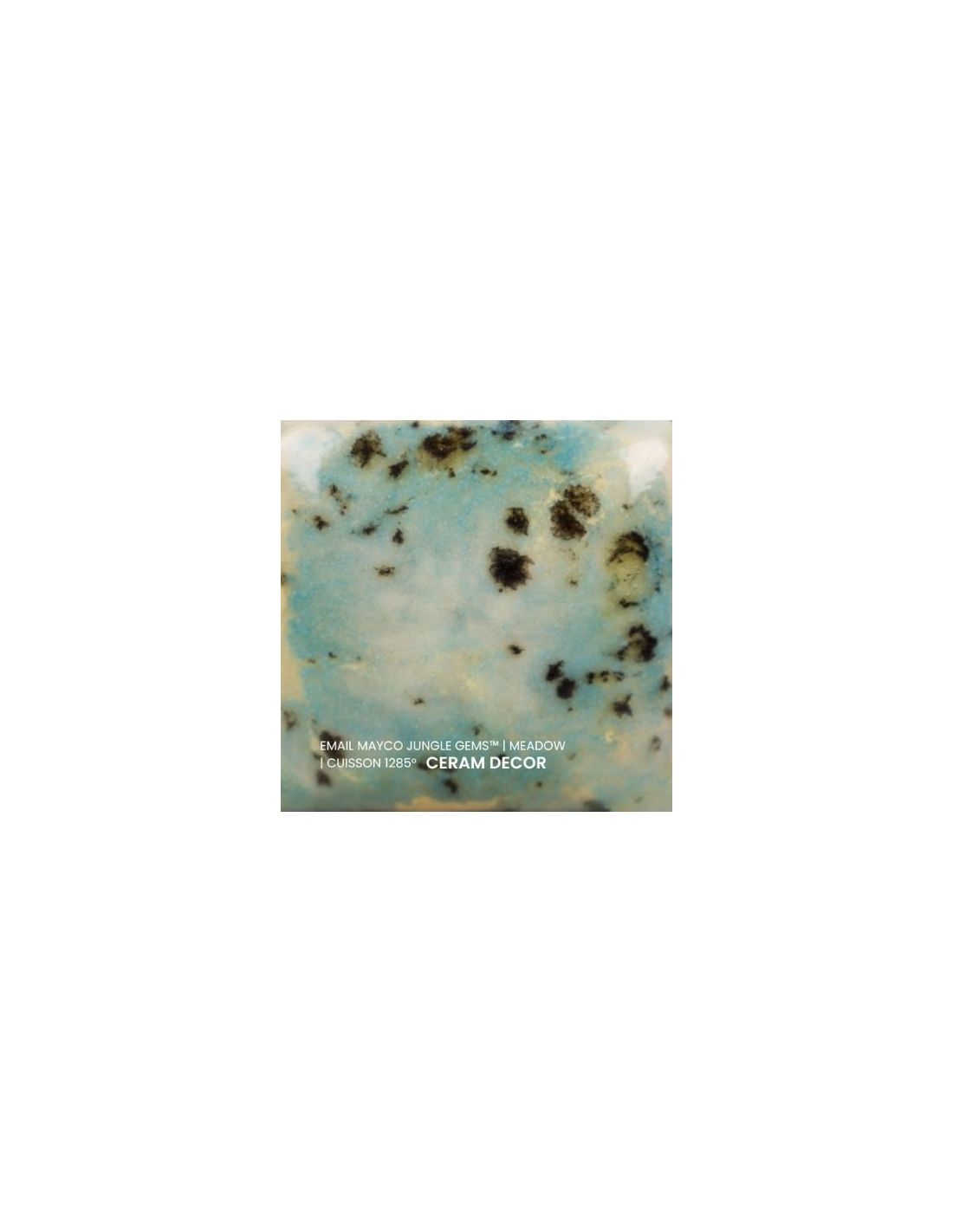 L'émail meadow de la série "Jungle Gems" Mayco® se compose d'une couleur de fond et de cristaux brillants colorés. Il est non toxique, possède un temps de séchage rapide et stable, tout en donnant à votre pièce un résultat étonnant! Sa composition et son mode de fabrication lui assure un excellent nappage lors de la cuisson qui corrige éventuellement les défauts d'application. Il est très flexible et simple d'emploi. Chaque émaillage est différent, les cristaux s'étalent sur les pièces plates et coulent sur les pièces verticales. Ils peuvent être superposés ou mélangés pour donner des effets spéciaux.