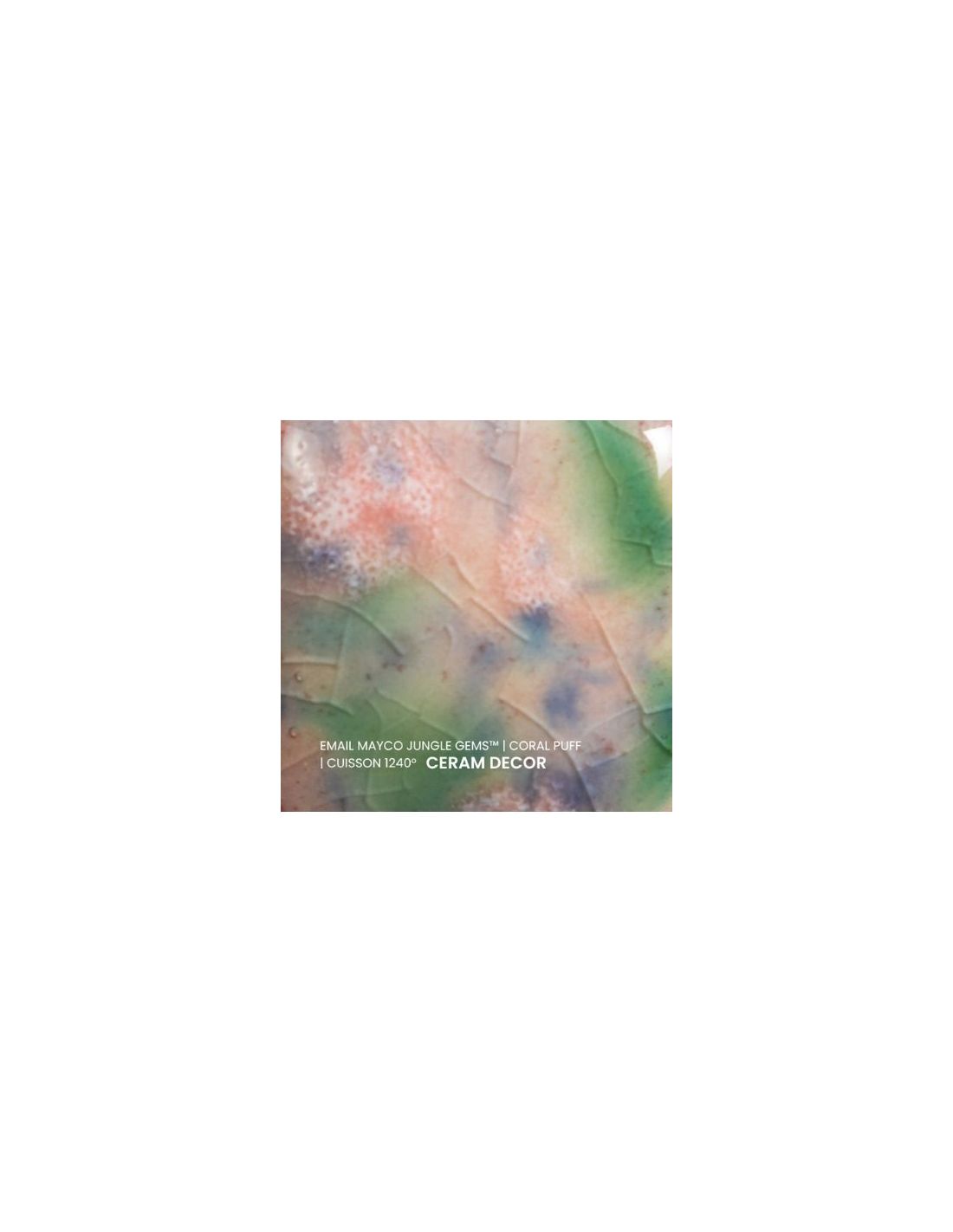 L'émail coral puff de la série "Jungle Gems" Mayco® se compose d'une couleur de fond et de cristaux brillants colorés. Il est non toxique, possède un temps de séchage rapide et stable, tout en donnant à votre pièce un résultat étonnant! Sa composition et son mode de fabrication lui assure un excellent nappage lors de la cuisson qui corrige éventuellement les défauts d'application. Il est très flexible et simple d'emploi. Chaque émaillage est différent, les cristaux s'étalent sur les pièces plates et coulent sur les pièces verticales. Ils peuvent être superposés ou mélangés pour donner des effets spéciaux.