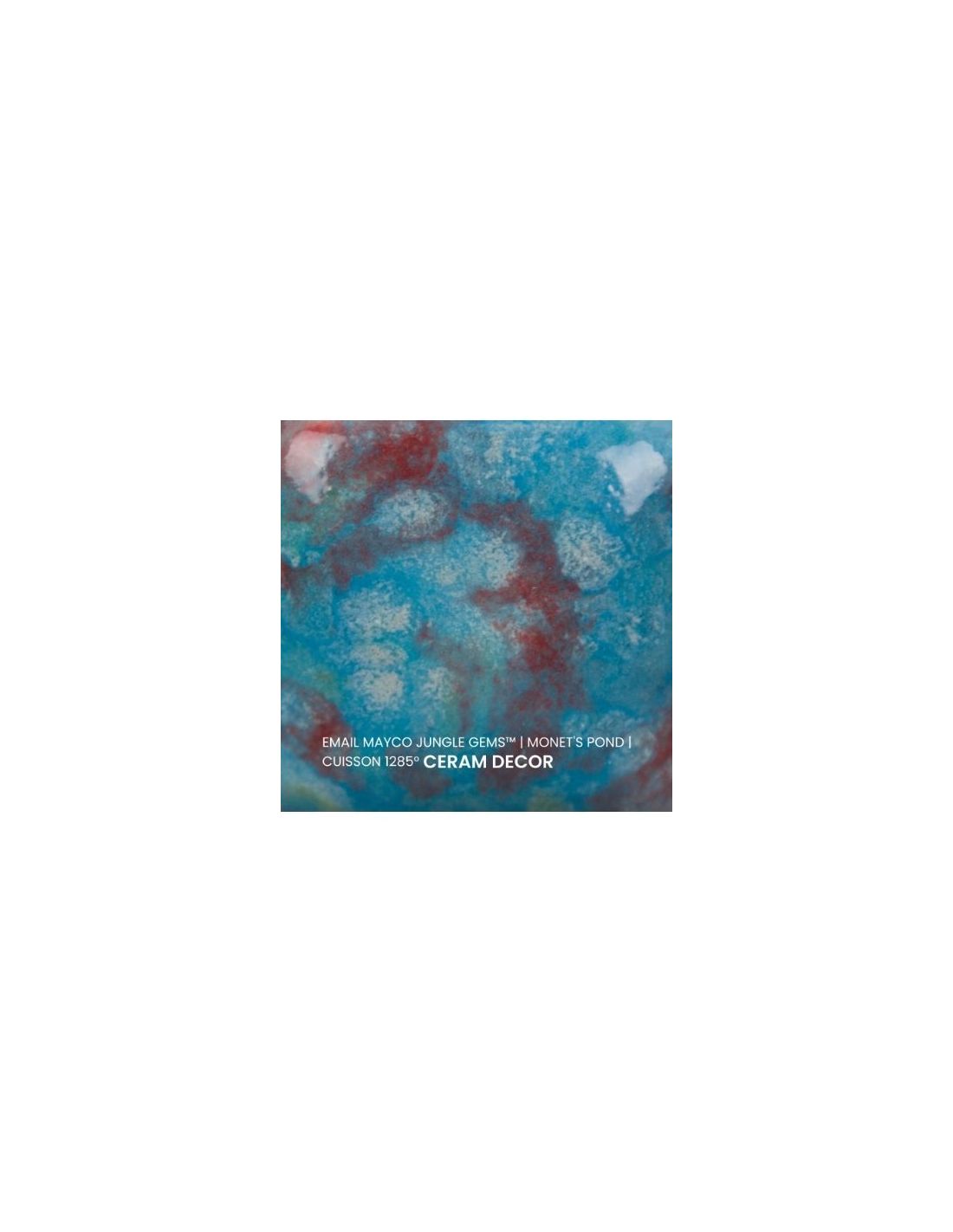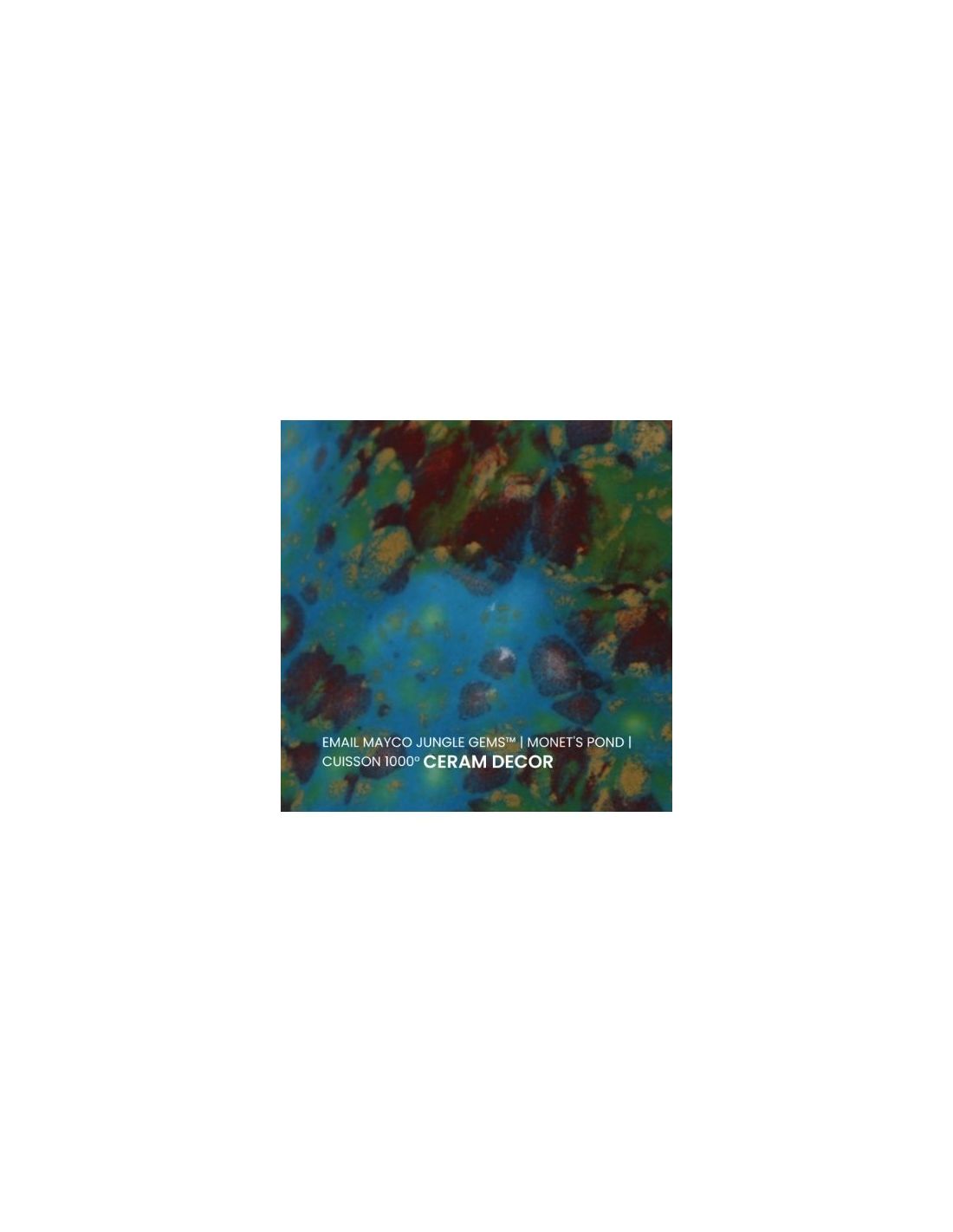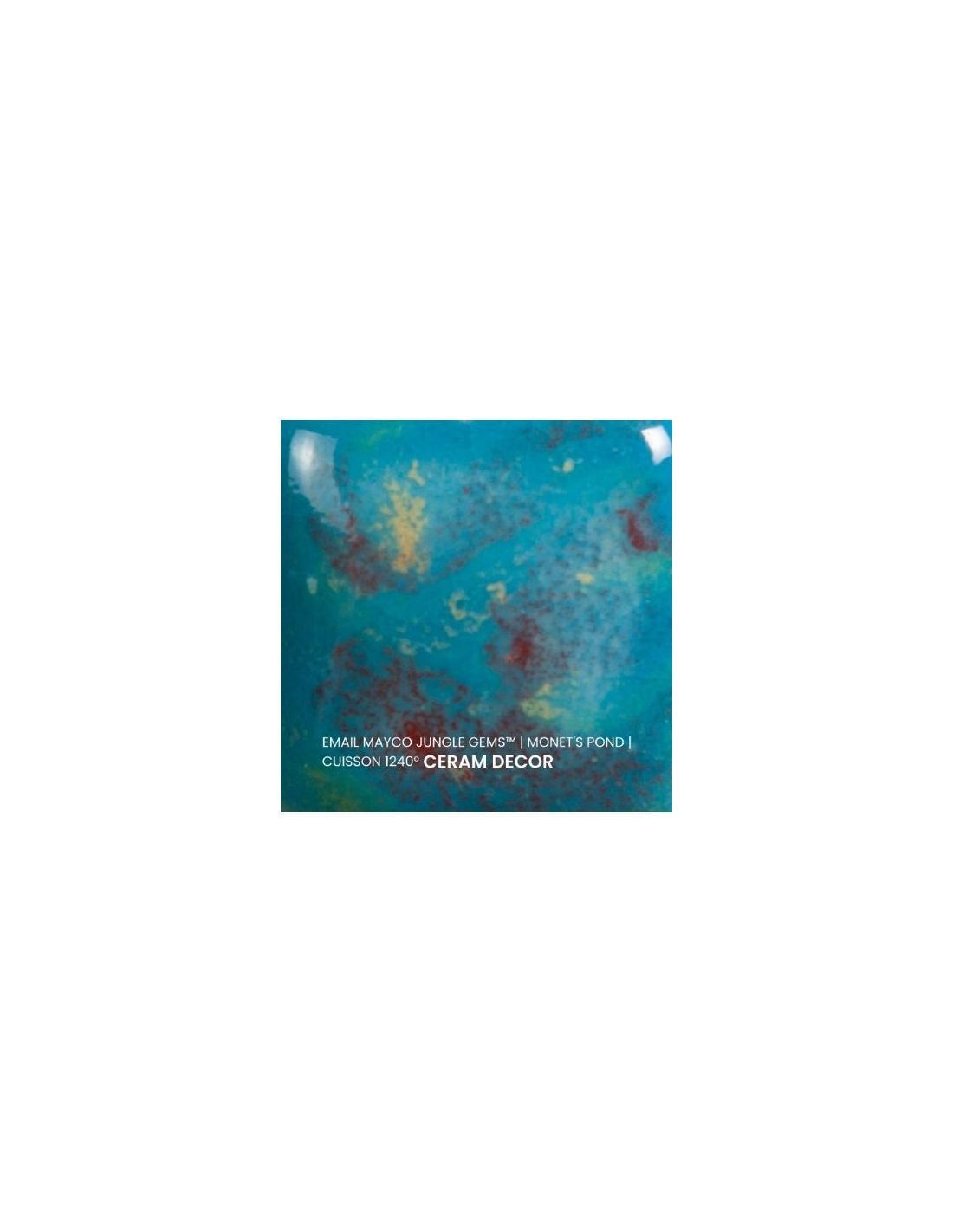 L'émail monet's pond de la série "Jungle Gems" Mayco® se compose d'une couleur de fond et de cristaux brillants colorés. Il est non toxique, possède un temps de séchage rapide et stable, tout en donnant à votre pièce un résultat étonnant! Sa composition et son mode de fabrication lui assure un excellent nappage lors de la cuisson qui corrige éventuellement les défauts d'application. Il est très flexible et simple d'emploi. Chaque émaillage est différent, les cristaux s'étalent sur les pièces plates et coulent sur les pièces verticales. Ils peuvent être superposés ou mélangés pour donner des effets spéciaux.