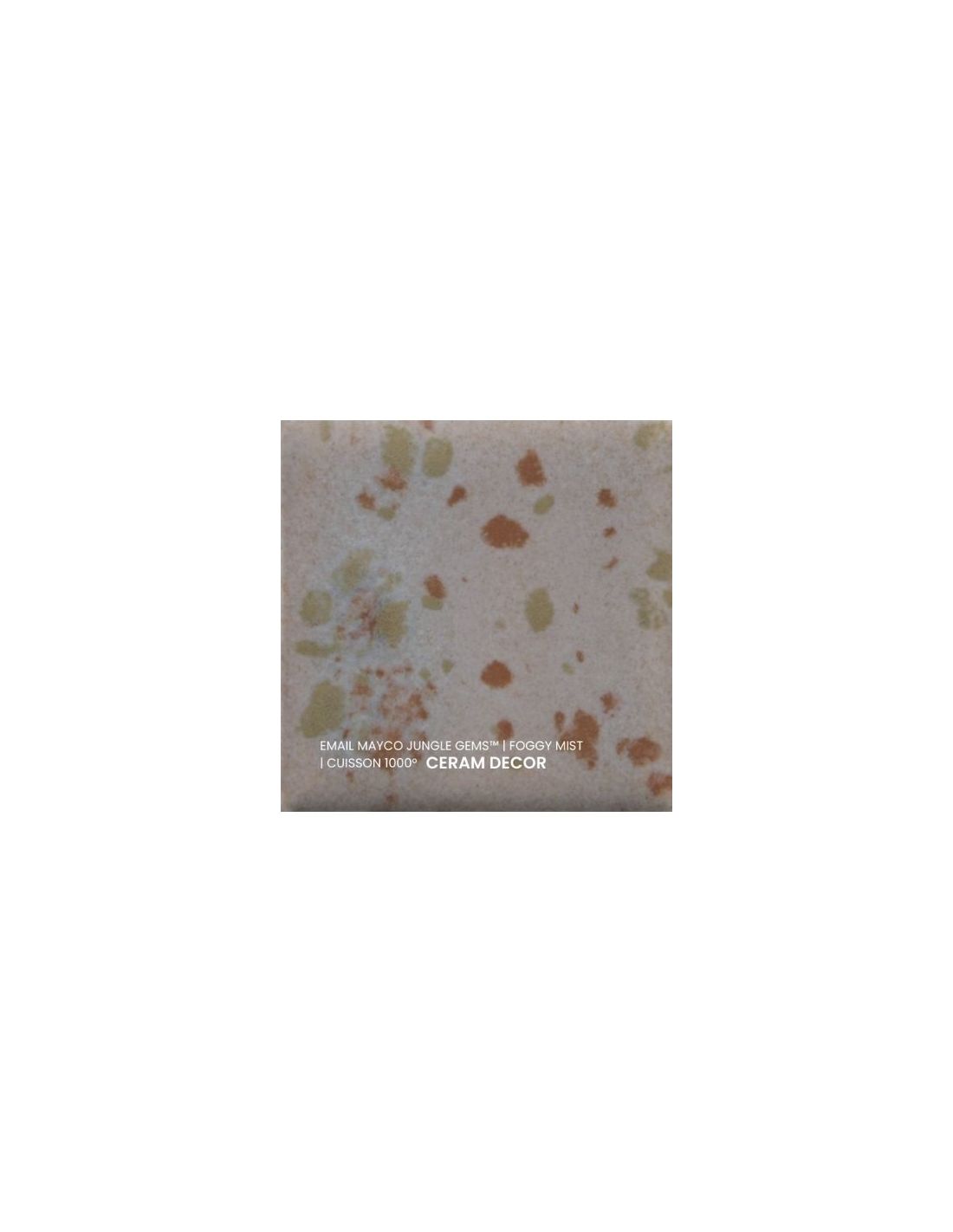 L'émail foggy mist de la série "Jungle Gems" Mayco® se compose d'une couleur de fond et de cristaux brillants colorés. Il est non toxique, possède un temps de séchage rapide et stable, tout en donnant à votre pièce un résultat étonnant! Sa composition et son mode de fabrication lui assure un excellent nappage lors de la cuisson qui corrige éventuellement les défauts d'application. Il est très flexible et simple d'emploi. Chaque émaillage est différent, les cristaux s'étalent sur les pièces plates et coulent sur les pièces verticales. Ils peuvent être superposés ou mélangés pour donner des effets spéciaux.