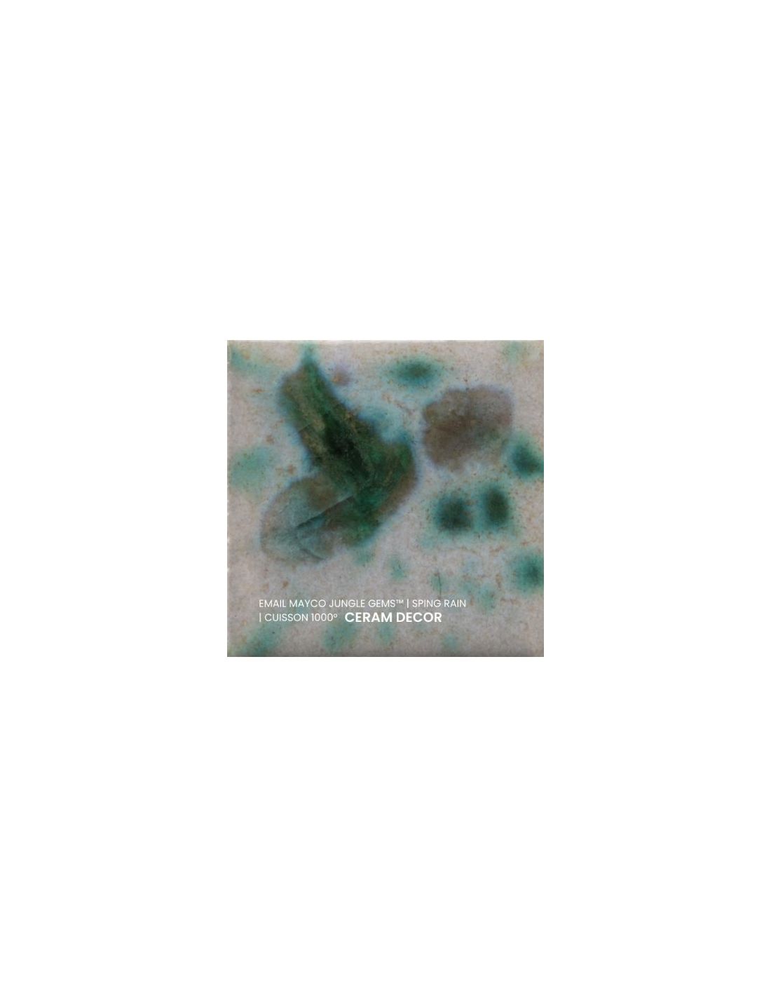 L'émail spring rain de la série "Jungle Gems" Mayco® se compose d'une couleur de fond et de cristaux brillants colorés. Il est non toxique, possède un temps de séchage rapide et stable, tout en donnant à votre pièce un résultat étonnant! Sa composition et son mode de fabrication lui assure un excellent nappage lors de la cuisson qui corrige éventuellement les défauts d'application. Il est très flexible et simple d'emploi. Chaque émaillage est différent, les cristaux s'étalent sur les pièces plates et coulent sur les pièces verticales. Ils peuvent être superposés ou mélangés pour donner des effets spéciaux.