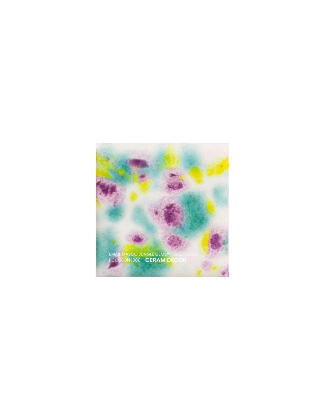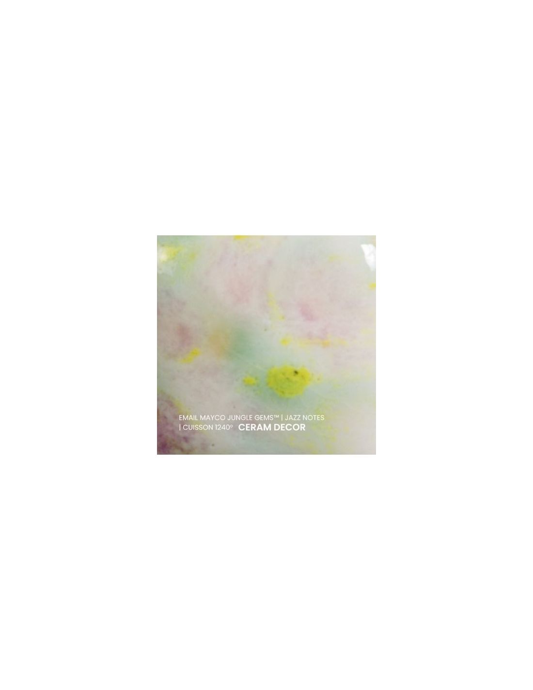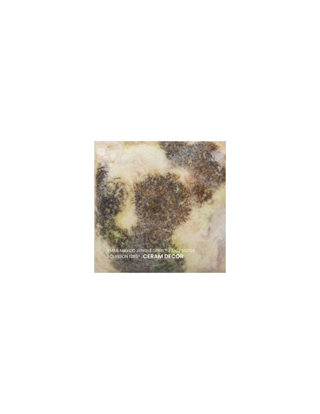 L'émail jazz notes de la série "Jungle Gems" Mayco® se compose d'une couleur de fond et de cristaux brillants colorés. Il est non toxique, possède un temps de séchage rapide et stable, tout en donnant à votre pièce un résultat étonnant! Sa composition et son mode de fabrication lui assure un excellent nappage lors de la cuisson qui corrige éventuellement les défauts d'application. Il est très flexible et simple d'emploi. Chaque émaillage est différent, les cristaux s'étalent sur les pièces plates et coulent sur les pièces verticales. Ils peuvent être superposés ou mélangés pour donner des effets spéciaux.