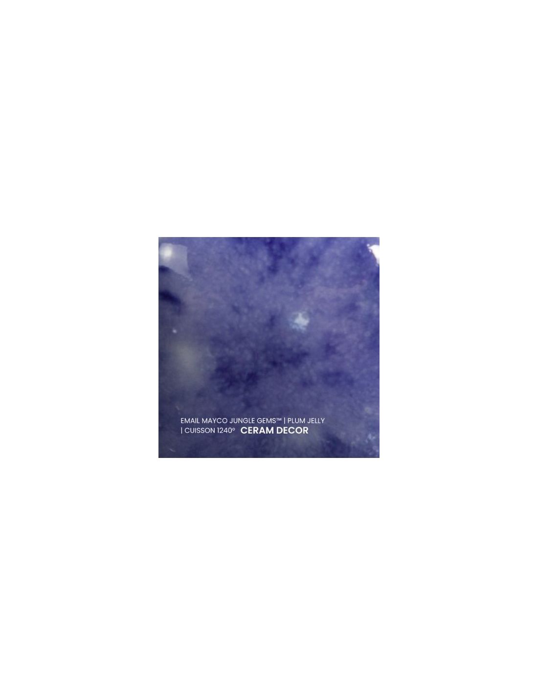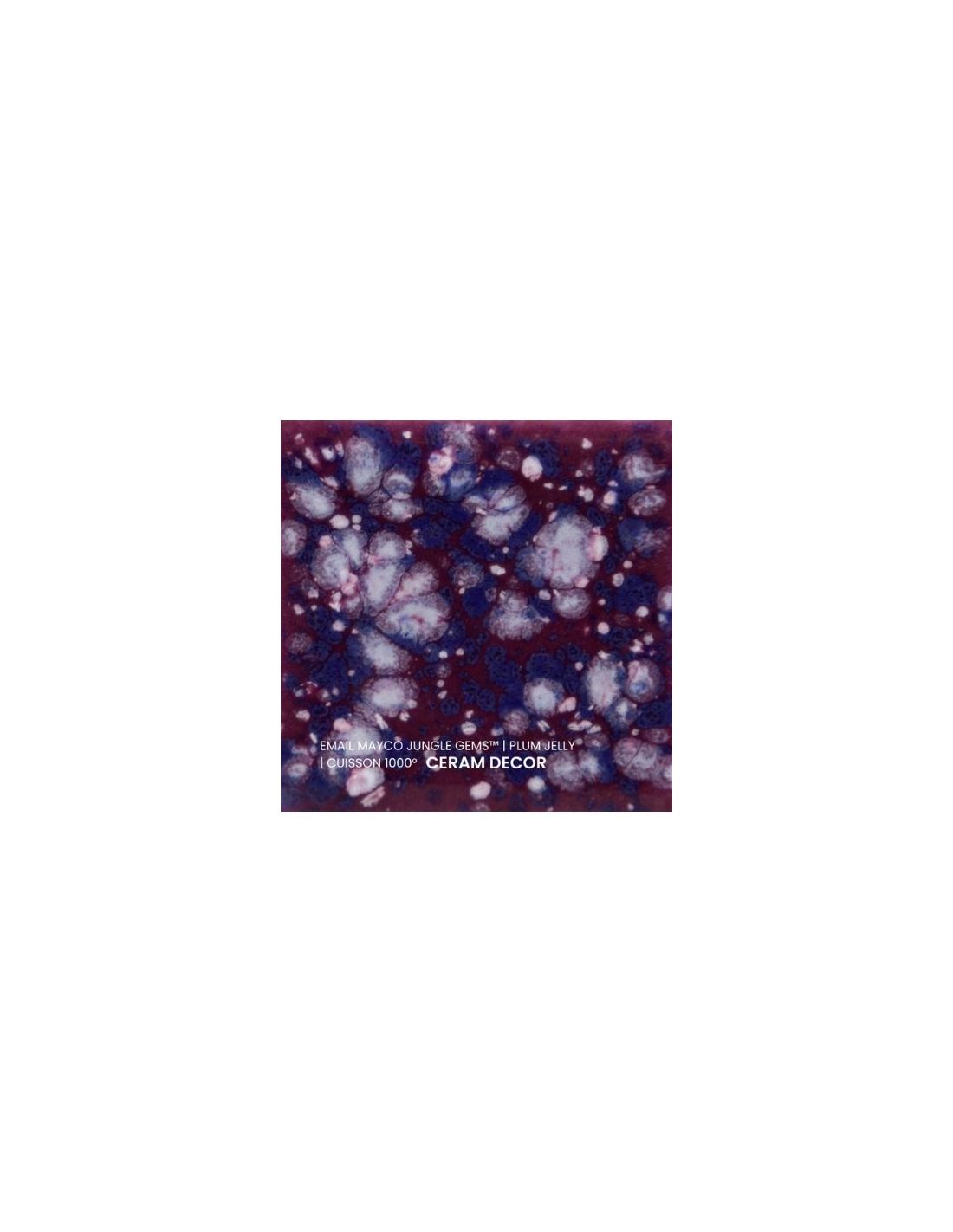 L'émail plum jelly de la série "Jungle Gems" Mayco® se compose d'une couleur de fond et de cristaux brillants colorés. Il est non toxique, possède un temps de séchage rapide et stable, tout en donnant à votre pièce un résultat étonnant! Sa composition et son mode de fabrication lui assure un excellent nappage lors de la cuisson qui corrige éventuellement les défauts d'application. Il est très flexible et simple d'emploi. Chaque émaillage est différent, les cristaux s'étalent sur les pièces plates et coulent sur les pièces verticales. Ils peuvent être superposés ou mélangés pour donner des effets spéciaux.