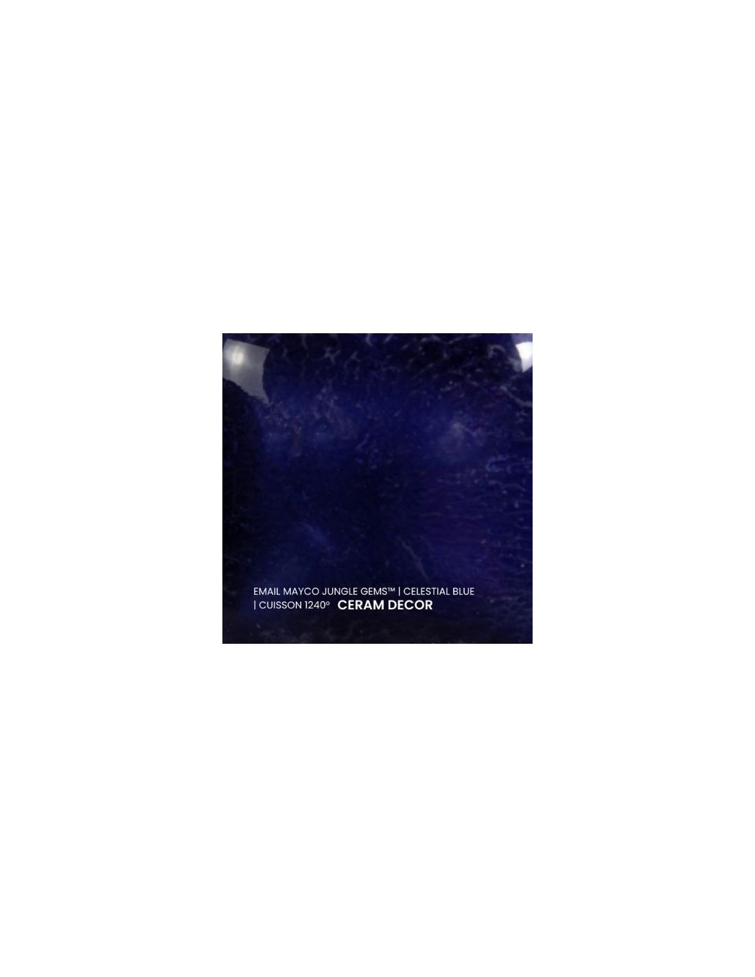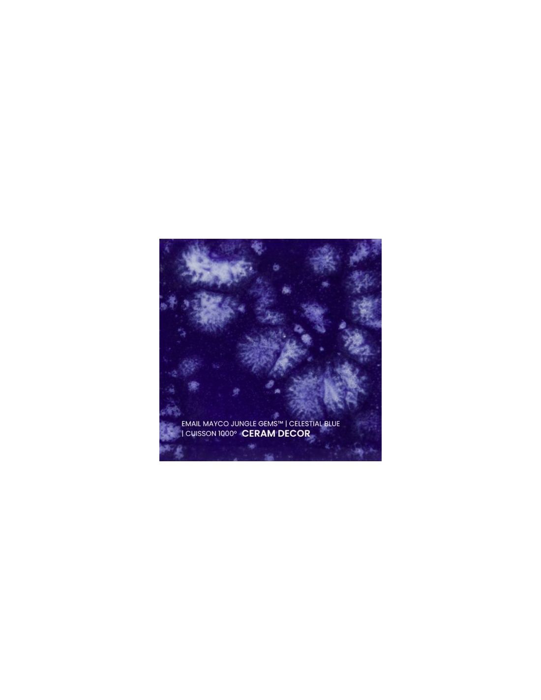 L'émail celestial blue de la série "Jungle Gems" Mayco® se compose d'une couleur de fond et de cristaux brillants colorés. Il est non toxique, possède un temps de séchage rapide et stable, tout en donnant à votre pièce un résultat étonnant! Sa composition et son mode de fabrication lui assure un excellent nappage lors de la cuisson qui corrige éventuellement les défauts d'application. Il est très flexible et simple d'emploi. Chaque émaillage est différent, les cristaux s'étalent sur les pièces plates et coulent sur les pièces verticales. Ils peuvent être superposés ou mélangés pour donner des effets spéciaux.