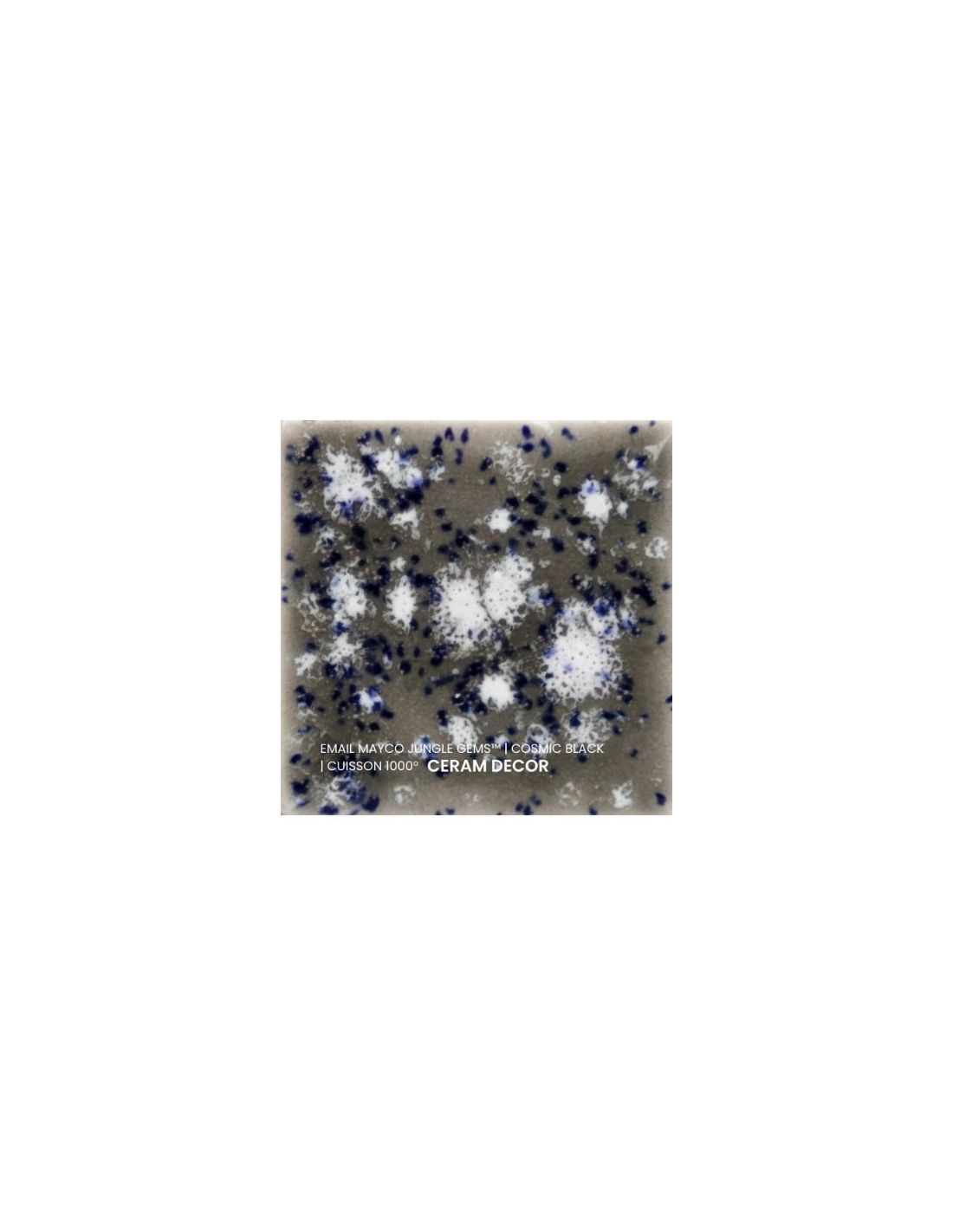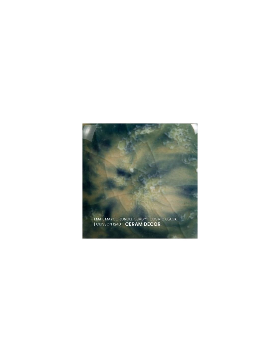 L'émail cosmic black de la série "Jungle Gems" Mayco® se compose d'une couleur de fond et de cristaux brillants colorés. Il est non toxique, possède un temps de séchage rapide et stable, tout en donnant à votre pièce un résultat étonnant! Sa composition et son mode de fabrication lui assure un excellent nappage lors de la cuisson qui corrige éventuellement les défauts d'application. Il est très flexible et simple d'emploi. Chaque émaillage est différent, les cristaux s'étalent sur les pièces plates et coulent sur les pièces verticales. Ils peuvent être superposés ou mélangés pour donner des effets spéciaux.