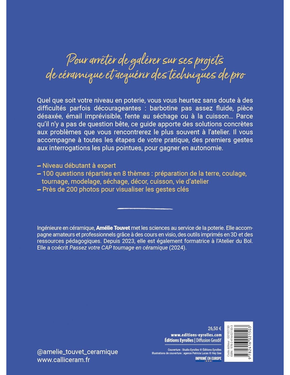 Quel que soit votre niveau en poterie, vous vous heurtez sans doute à des difficultés parfois décourageantes : barbotine pas assez fluide, pièce désaxée, émail imprévisible, fente au séchage ou à la cuisson...